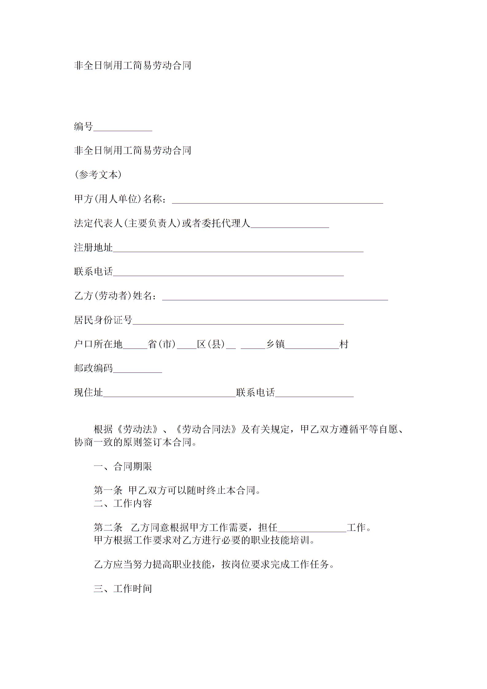 【2017年最新合同模板】非全日制用工简易劳动合同
