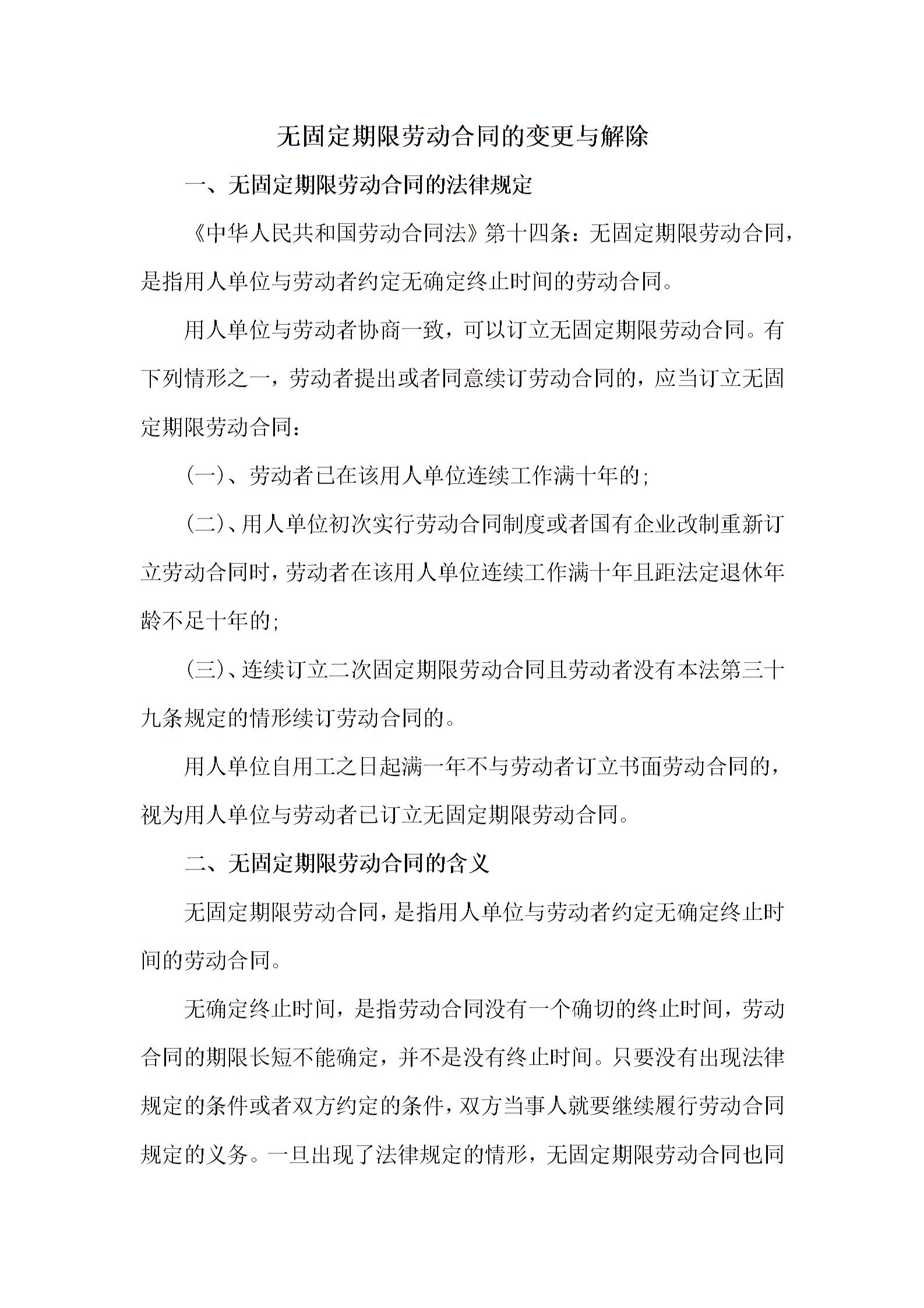 无固定期限劳动合同的变更与解除