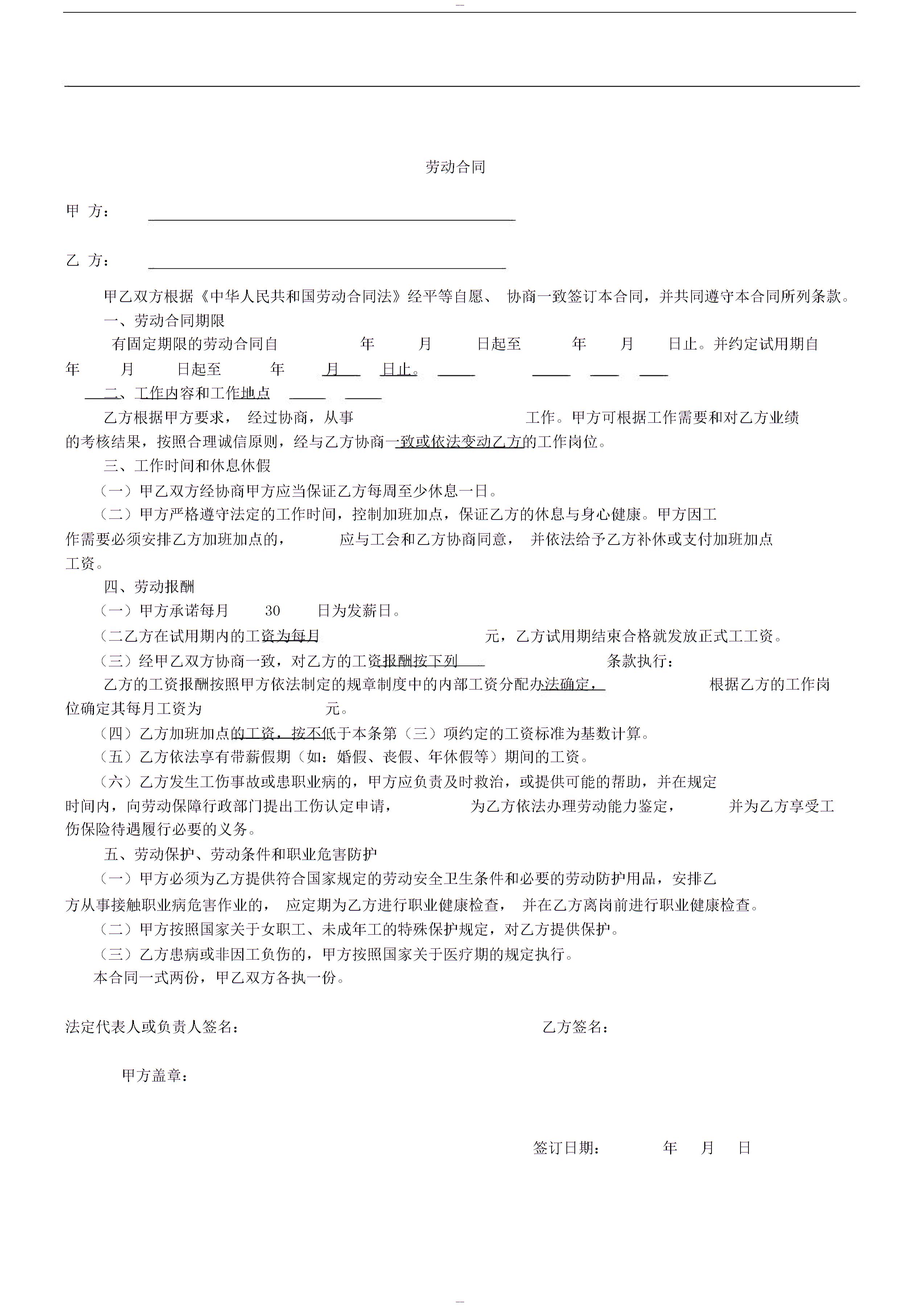 【2017年最新合同模板】福建省劳动合同书范本_格式_样本_样式_协议