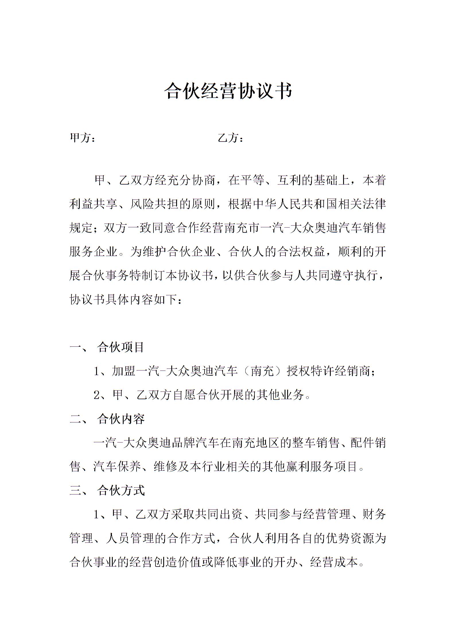 合伙经营合同书