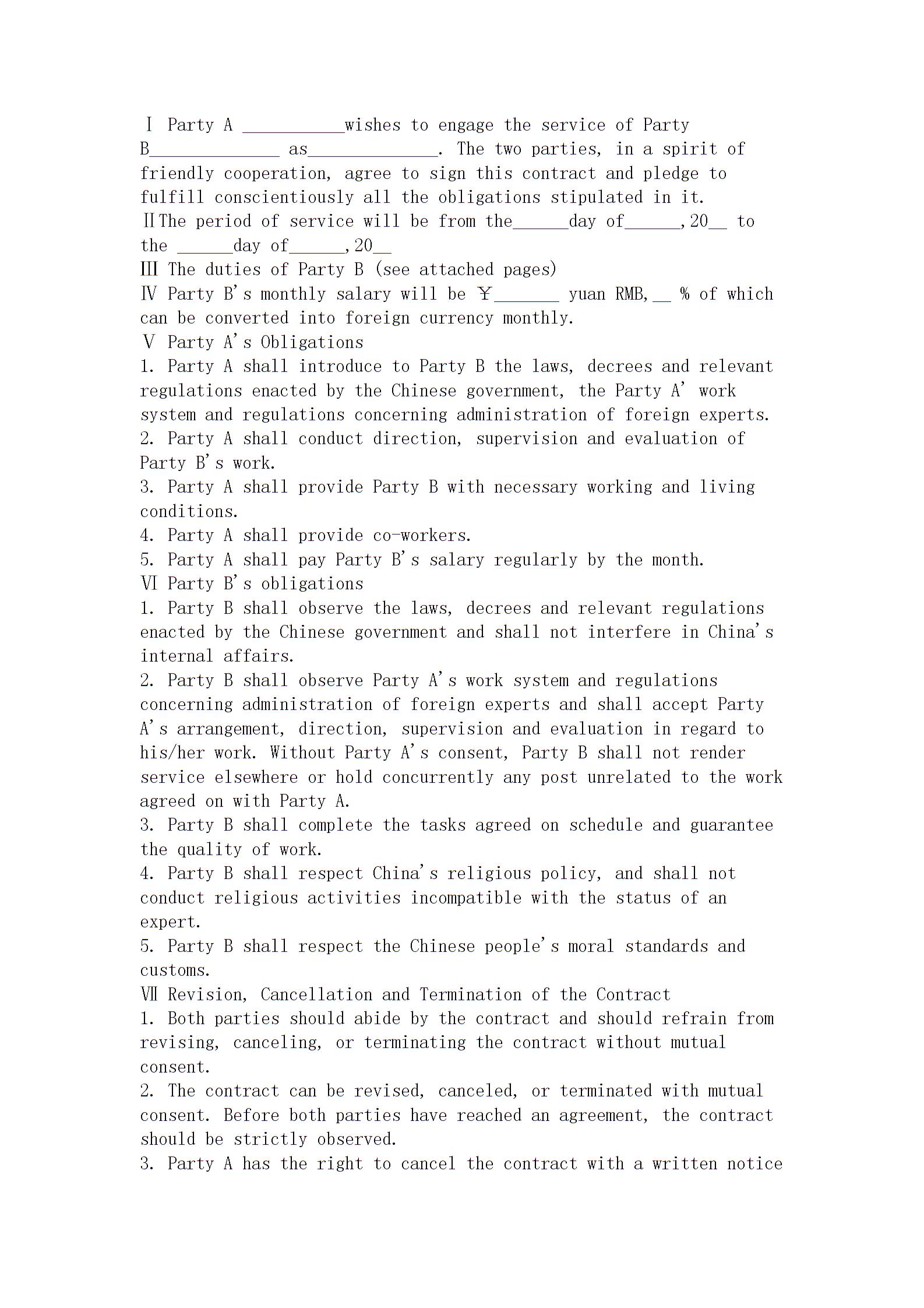 78【2017年最新合同模板】英文聘用合同(聘用外国人)