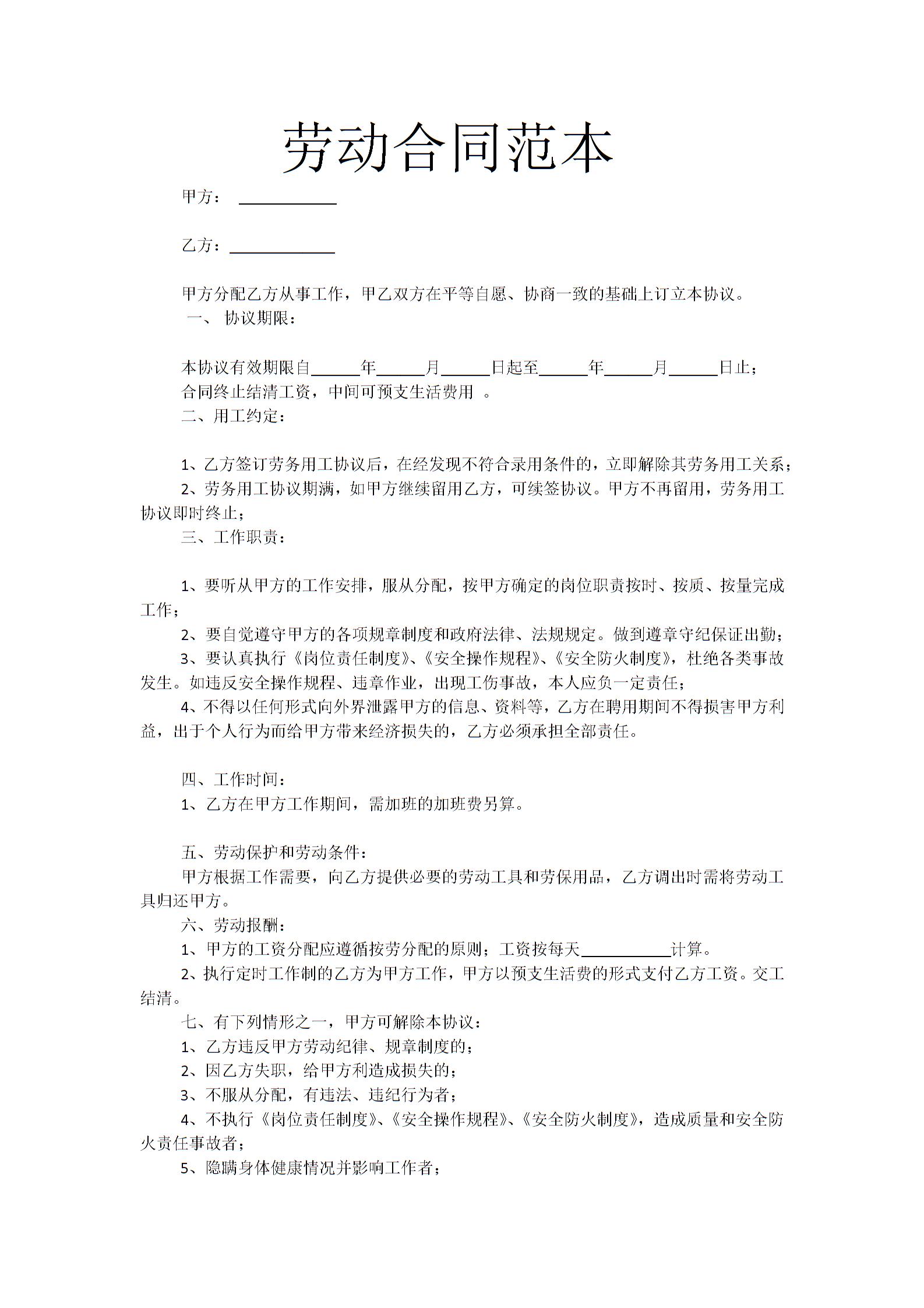 【2017年最新合同模板】福建省劳动合同书范本_格式_样本_样式_协议