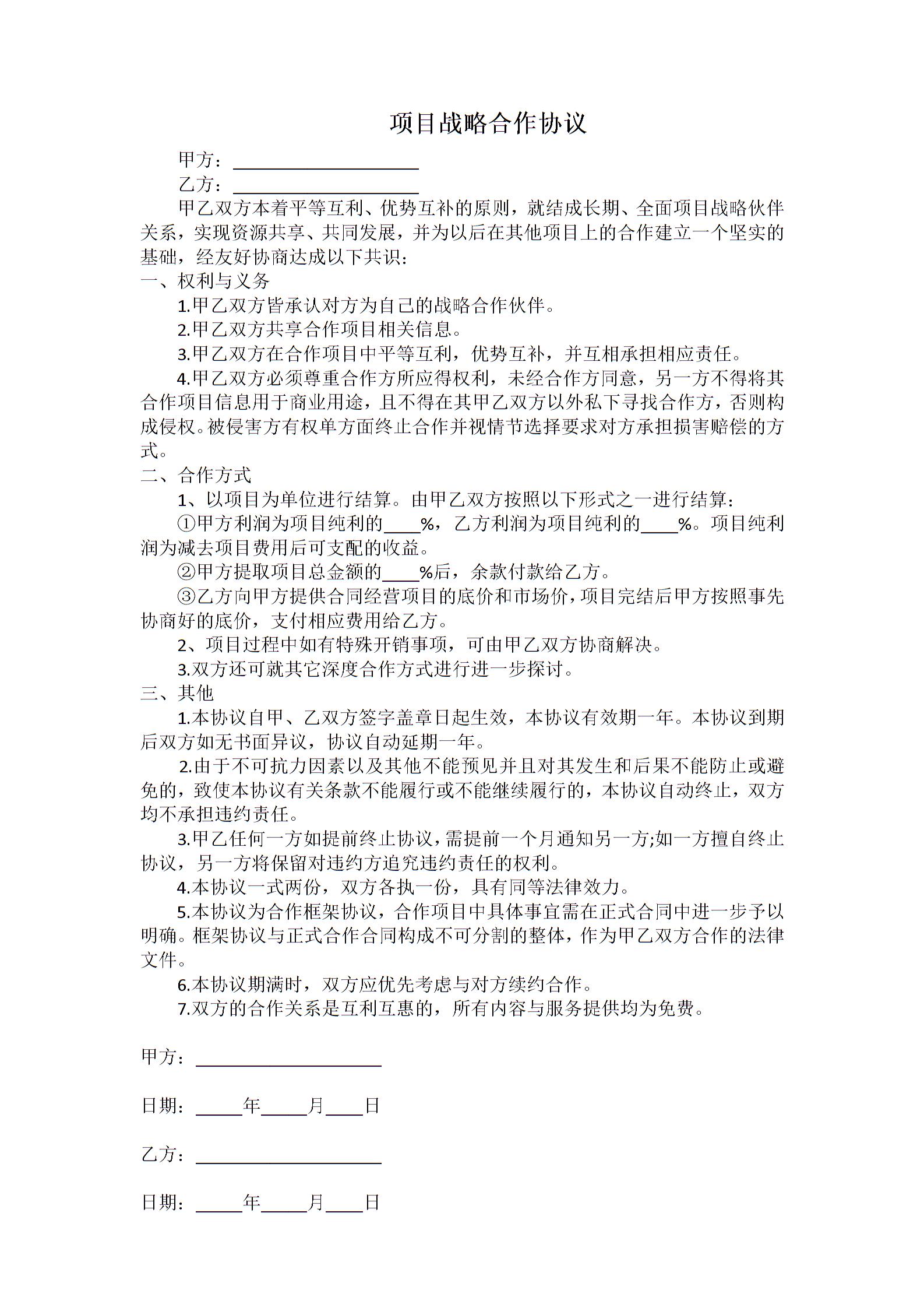 项目战略合作协议