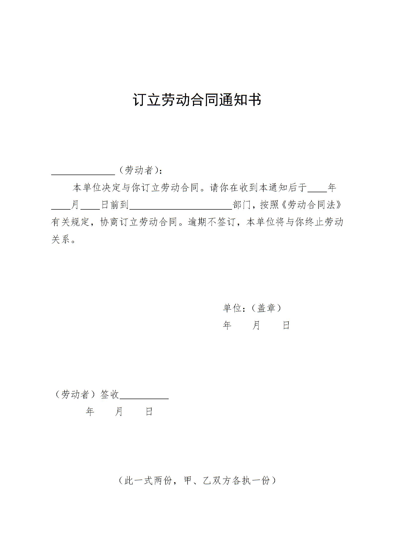 订立劳动合同通知书