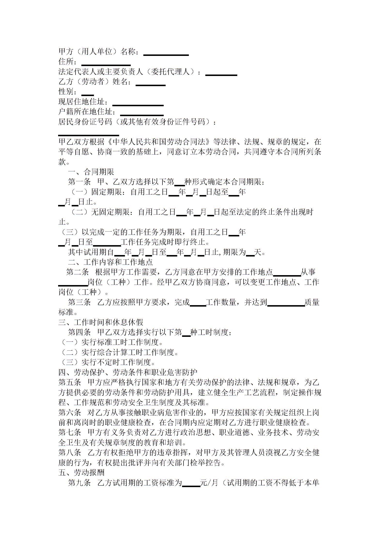 陕西省人力资源和社会保障厅制---劳动合同书