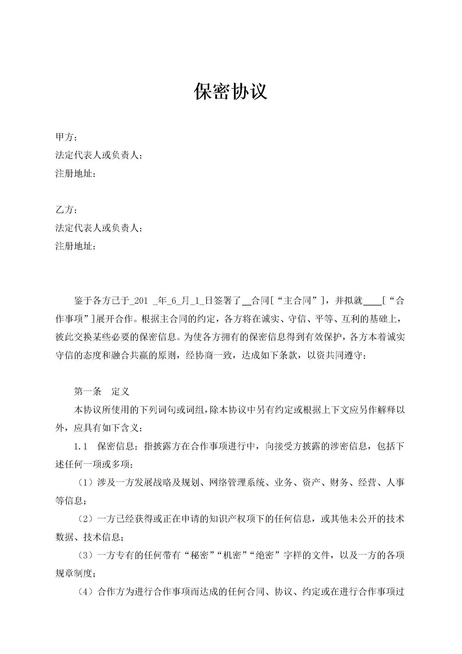 BG009-保密协议-通用-简明