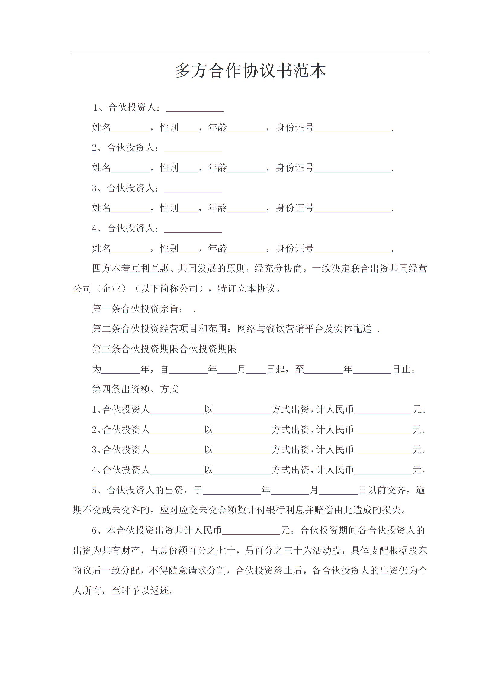 多方合作协议书范本