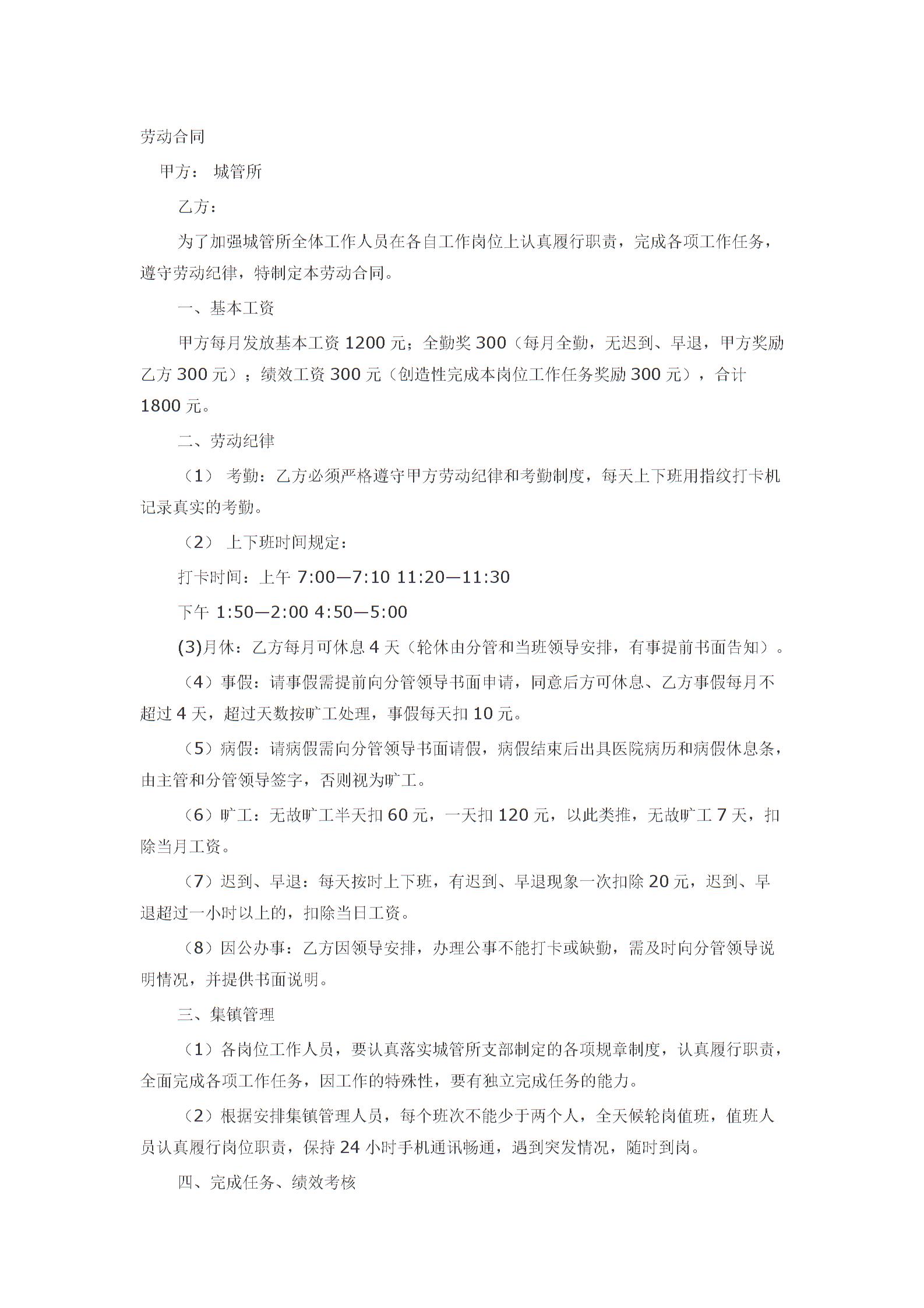 城管协管员劳动合同