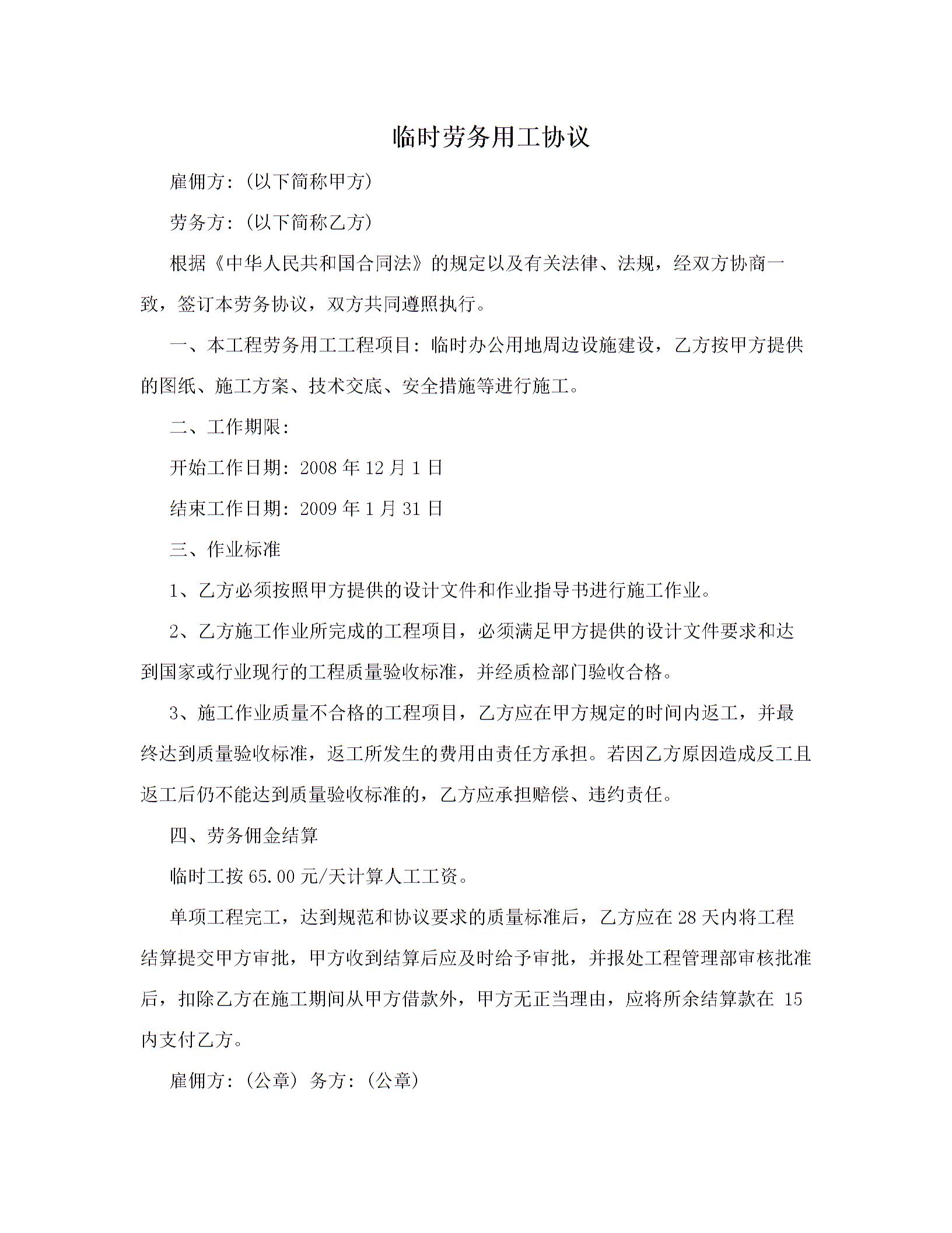 临时劳务用工协议