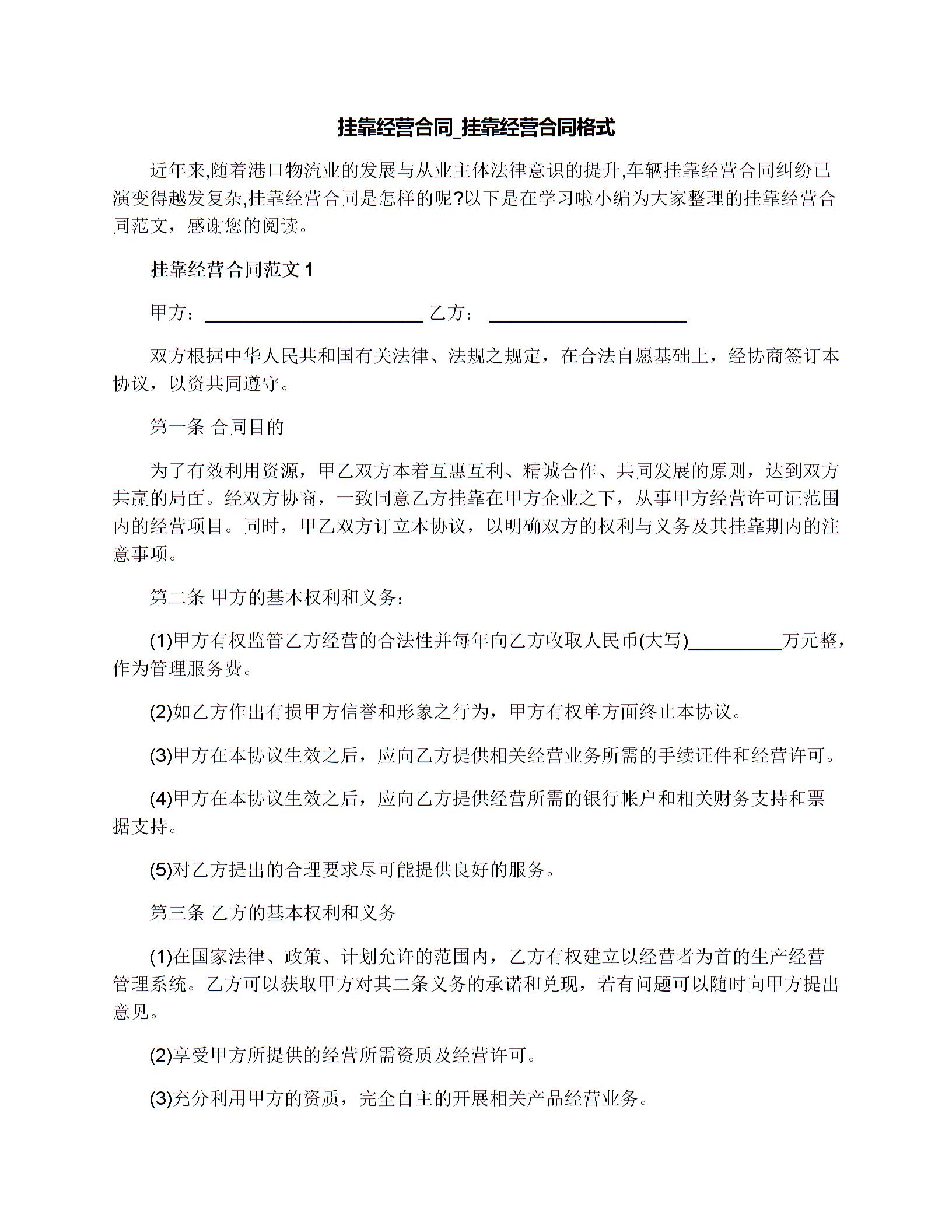 挂靠经营合同_挂靠经营合同格式