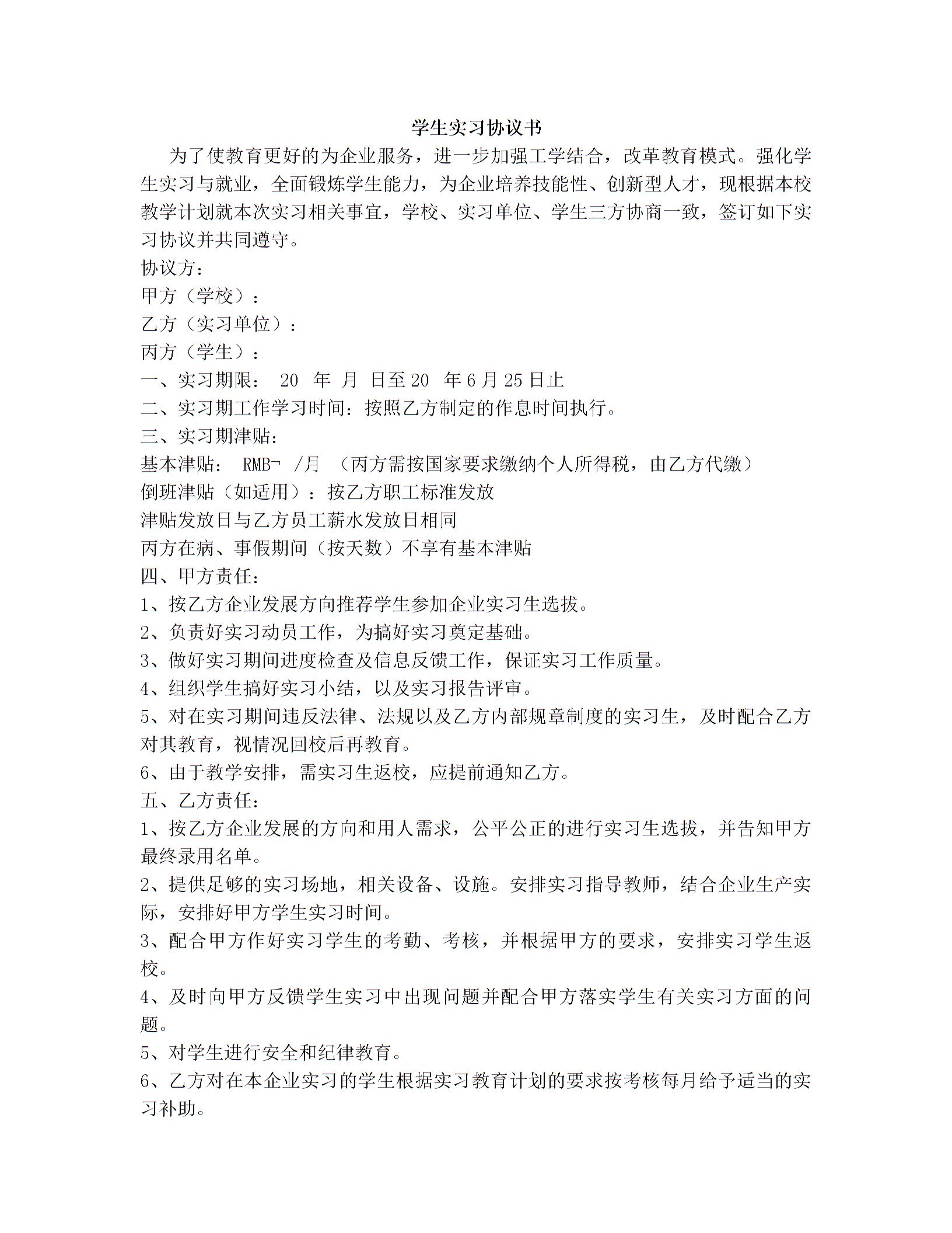 实习三方协议范文