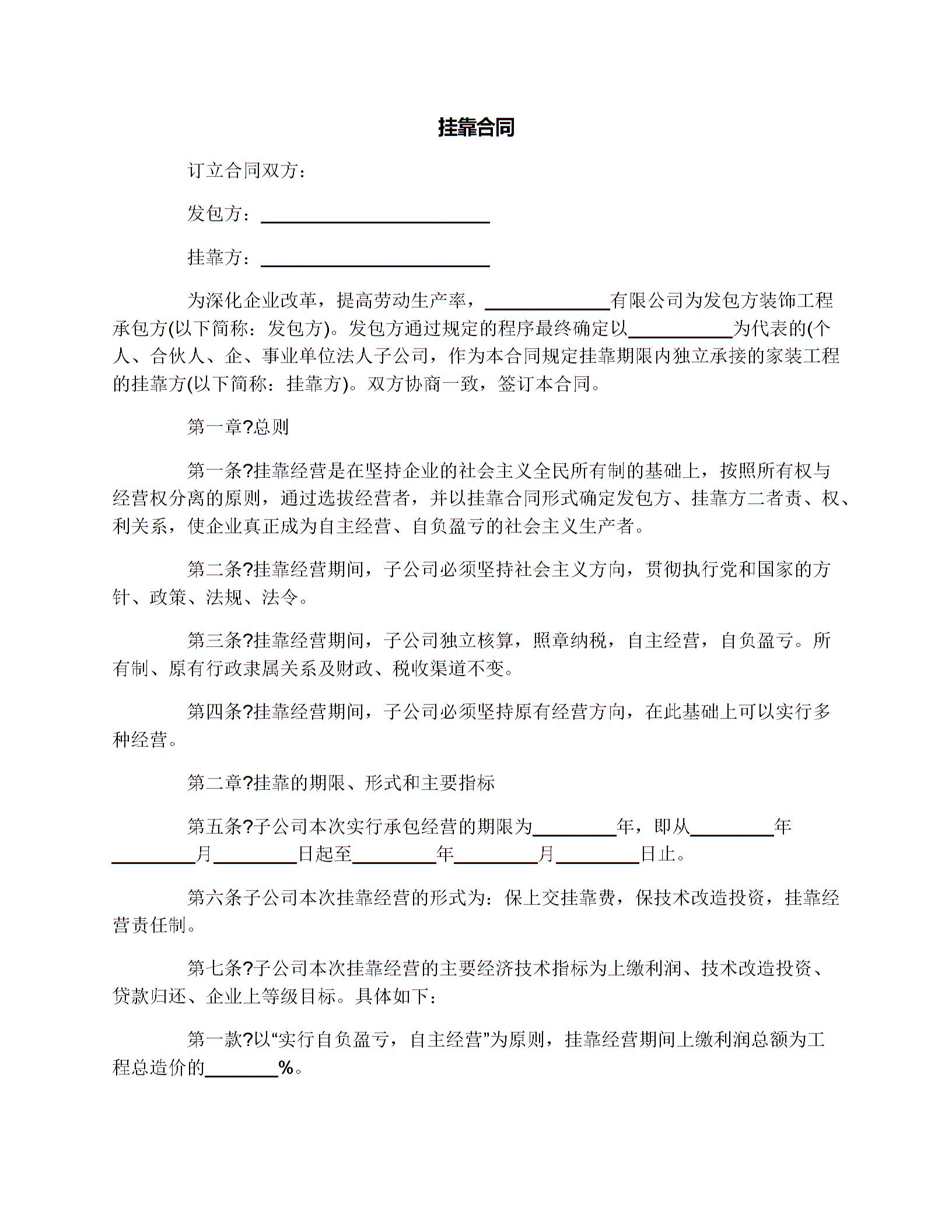挂靠合同