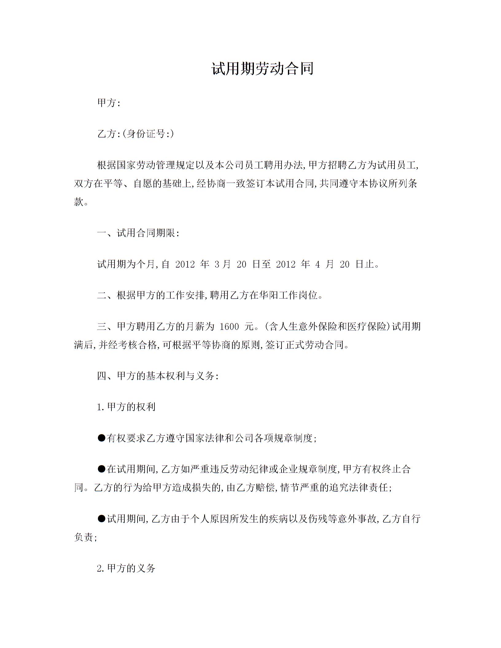 试用期劳动合同