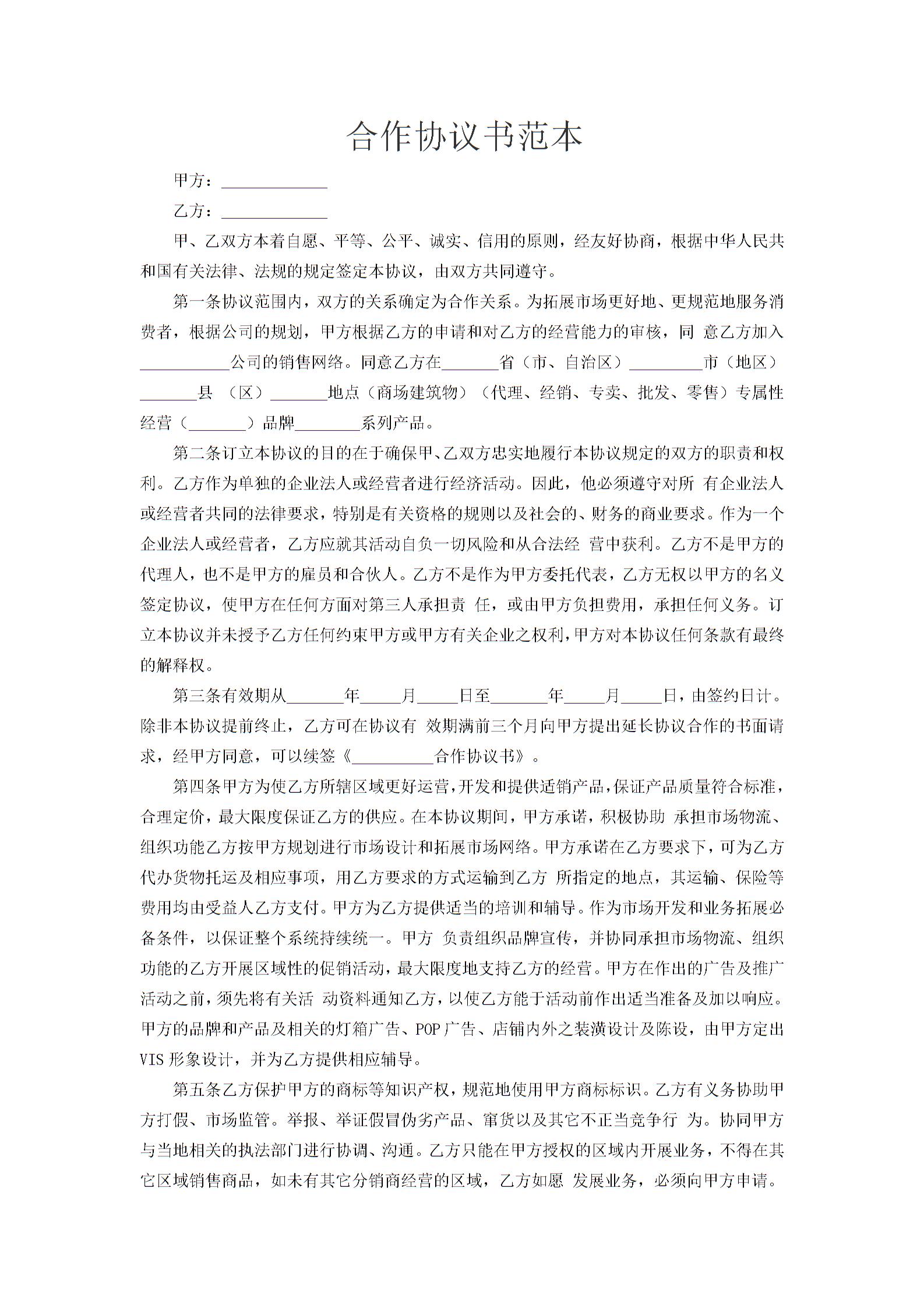 更多合作协议下载