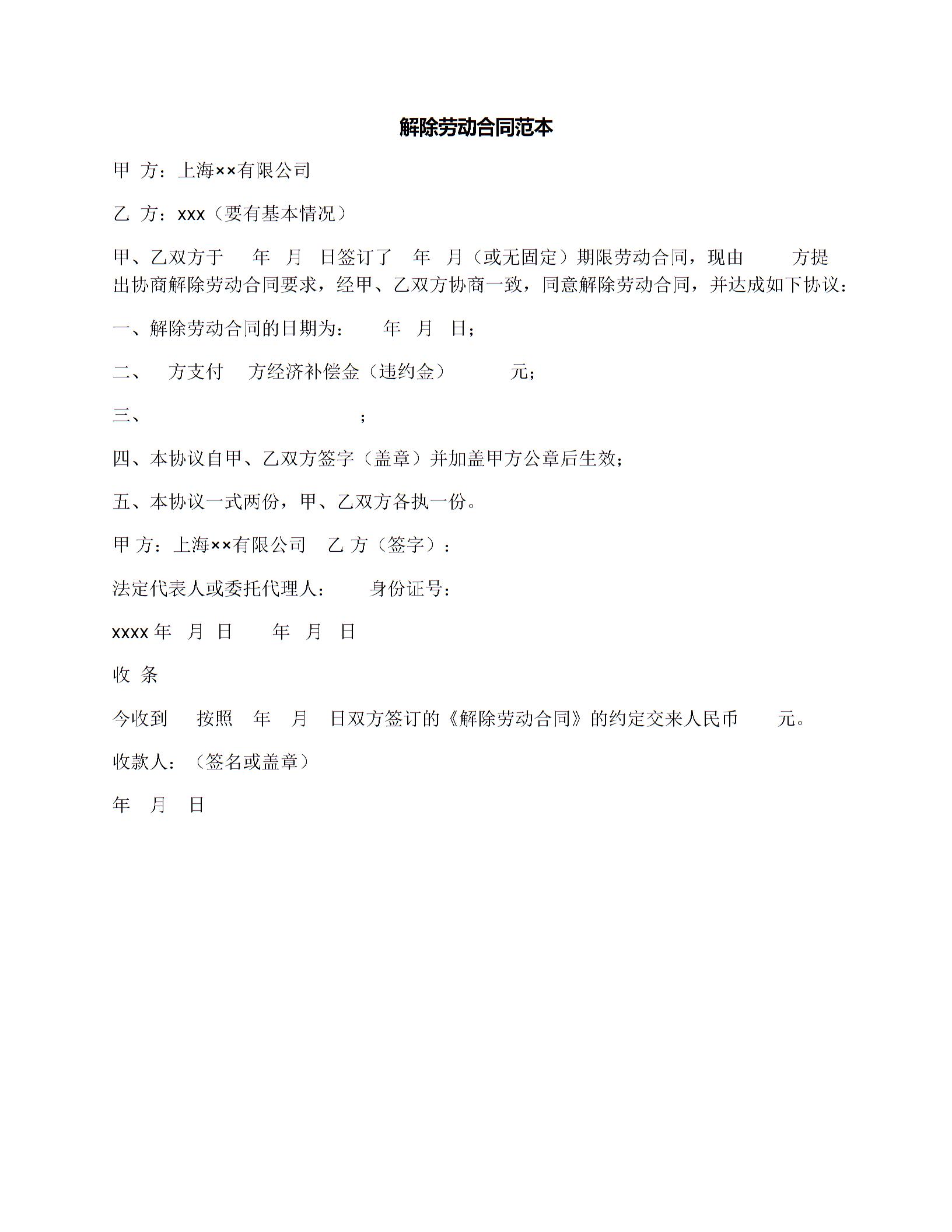 解除劳动合同范本