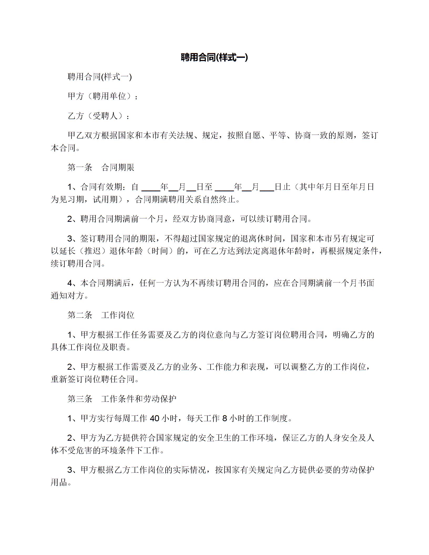 聘用合同(样式一)