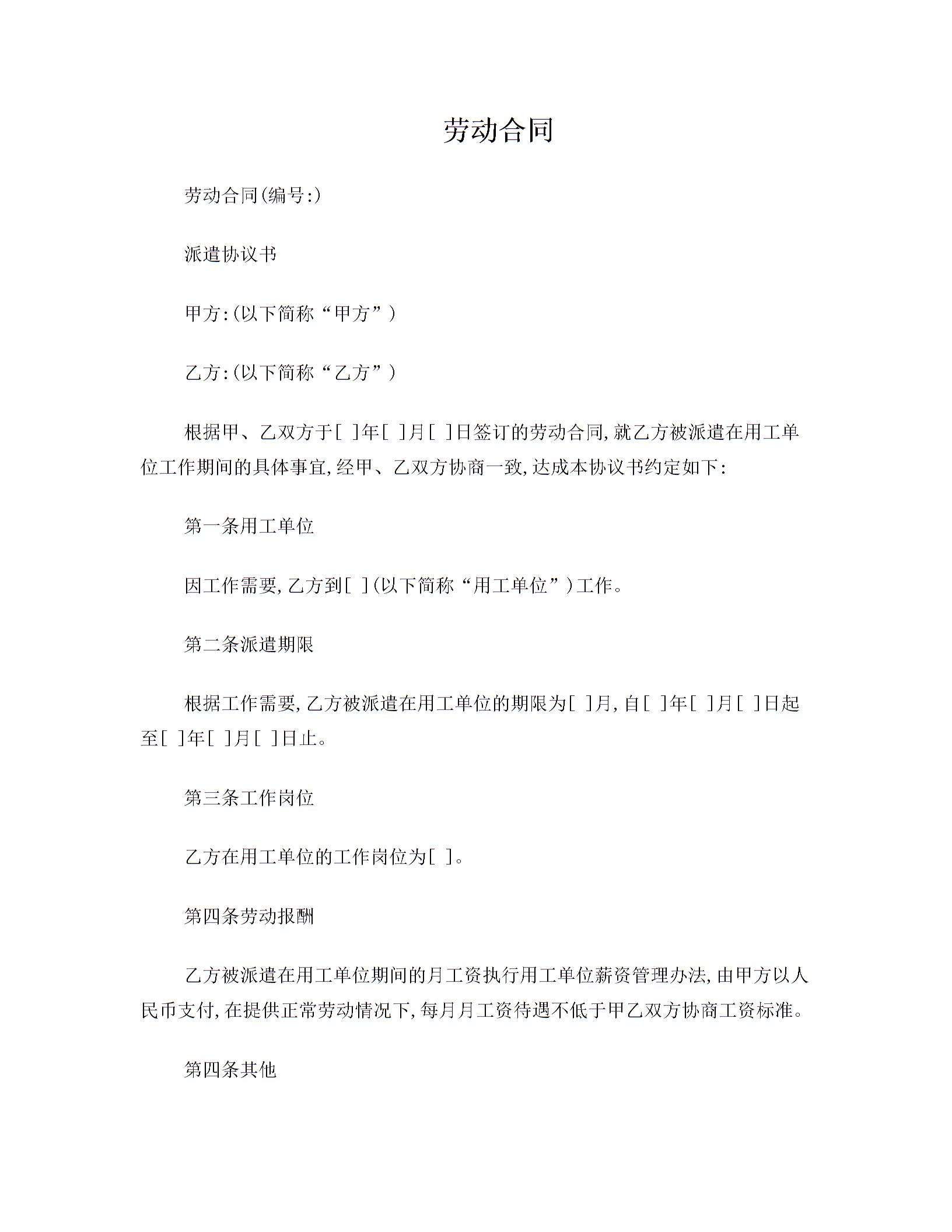 劳务派遣合同(简单版)