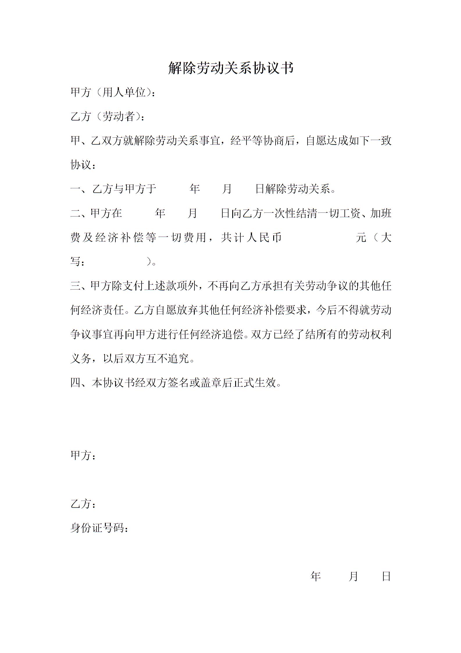 协商解除劳动关系协议