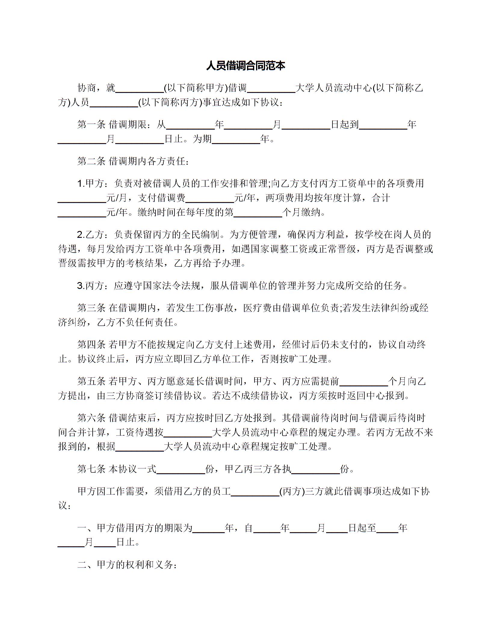 人员借调合同范本