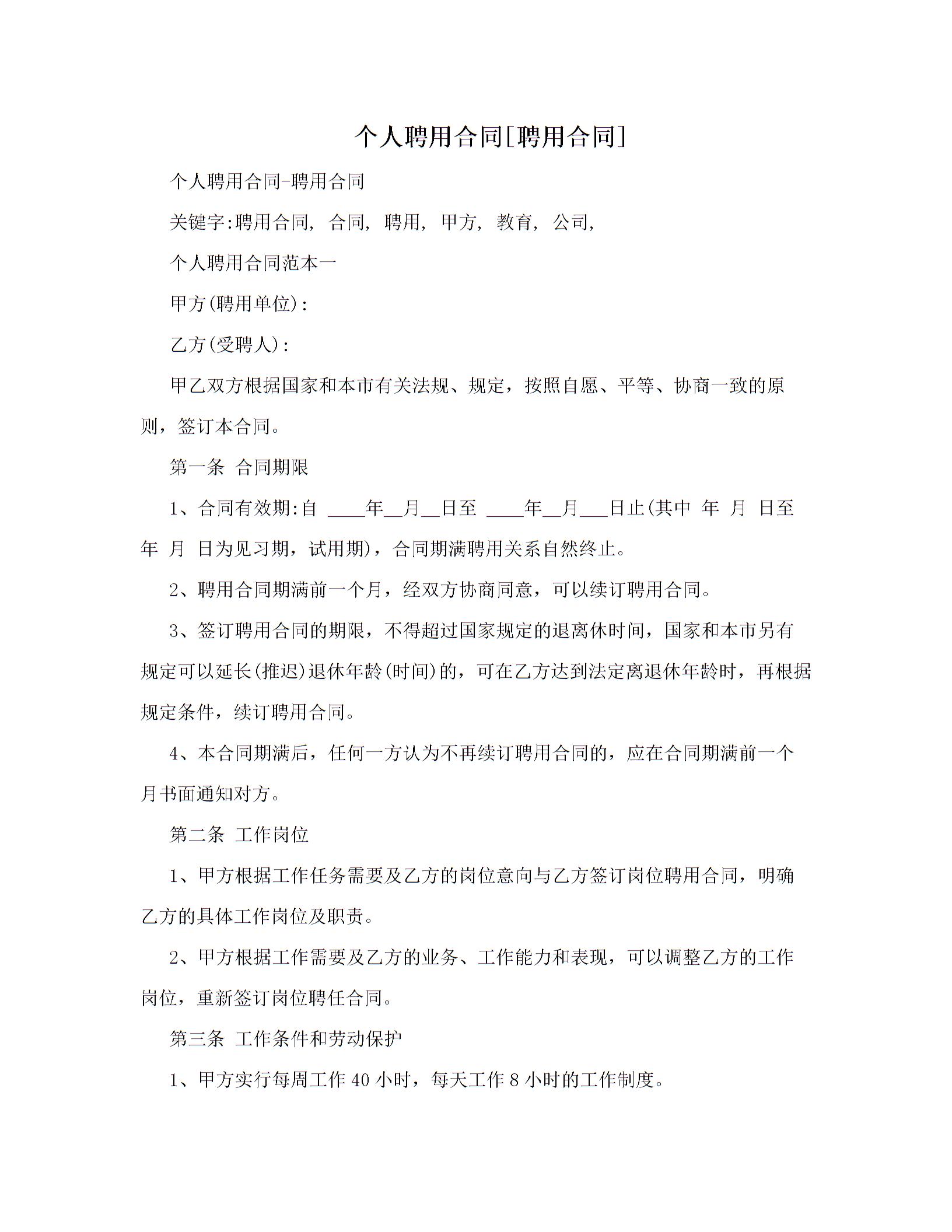 个人聘用合同