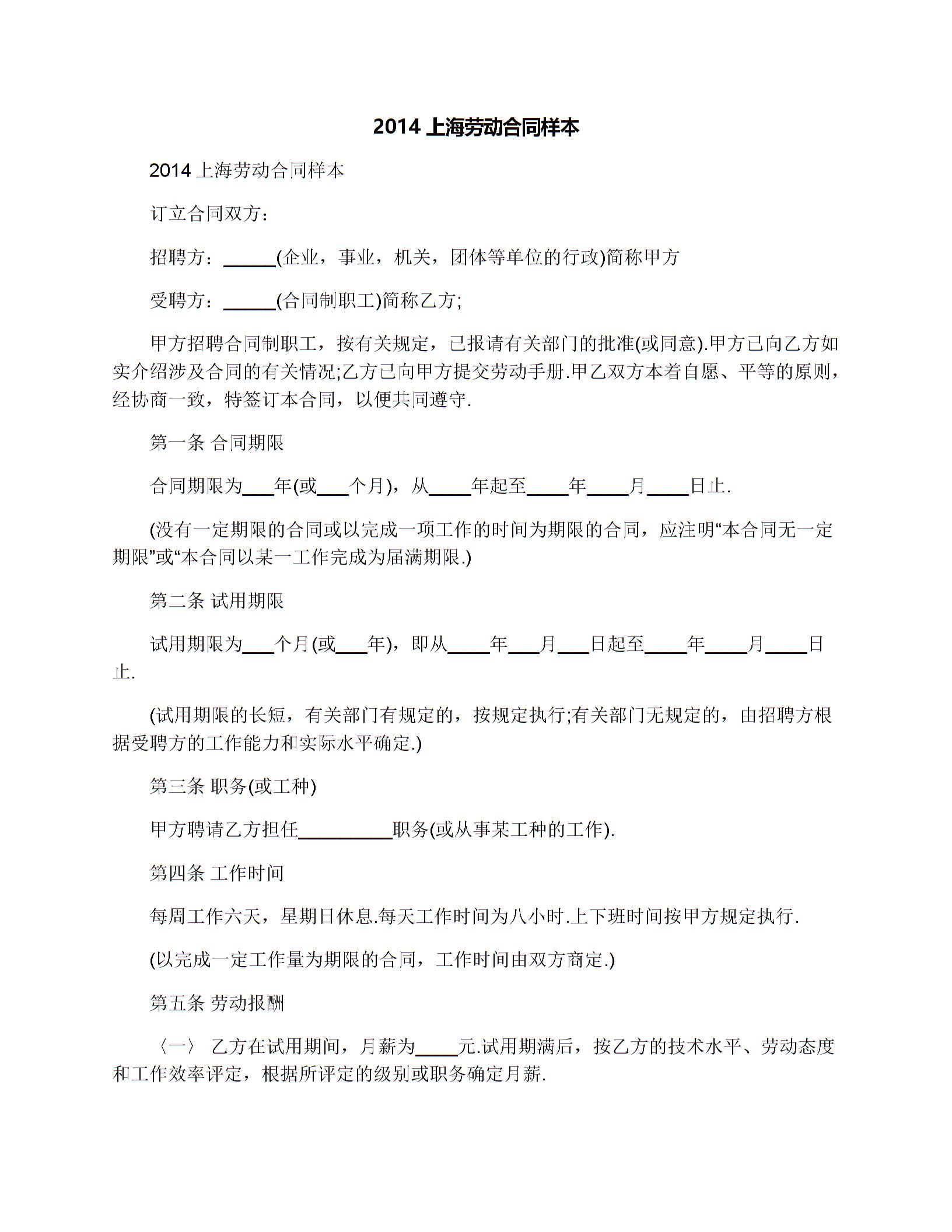上海劳动合同样本