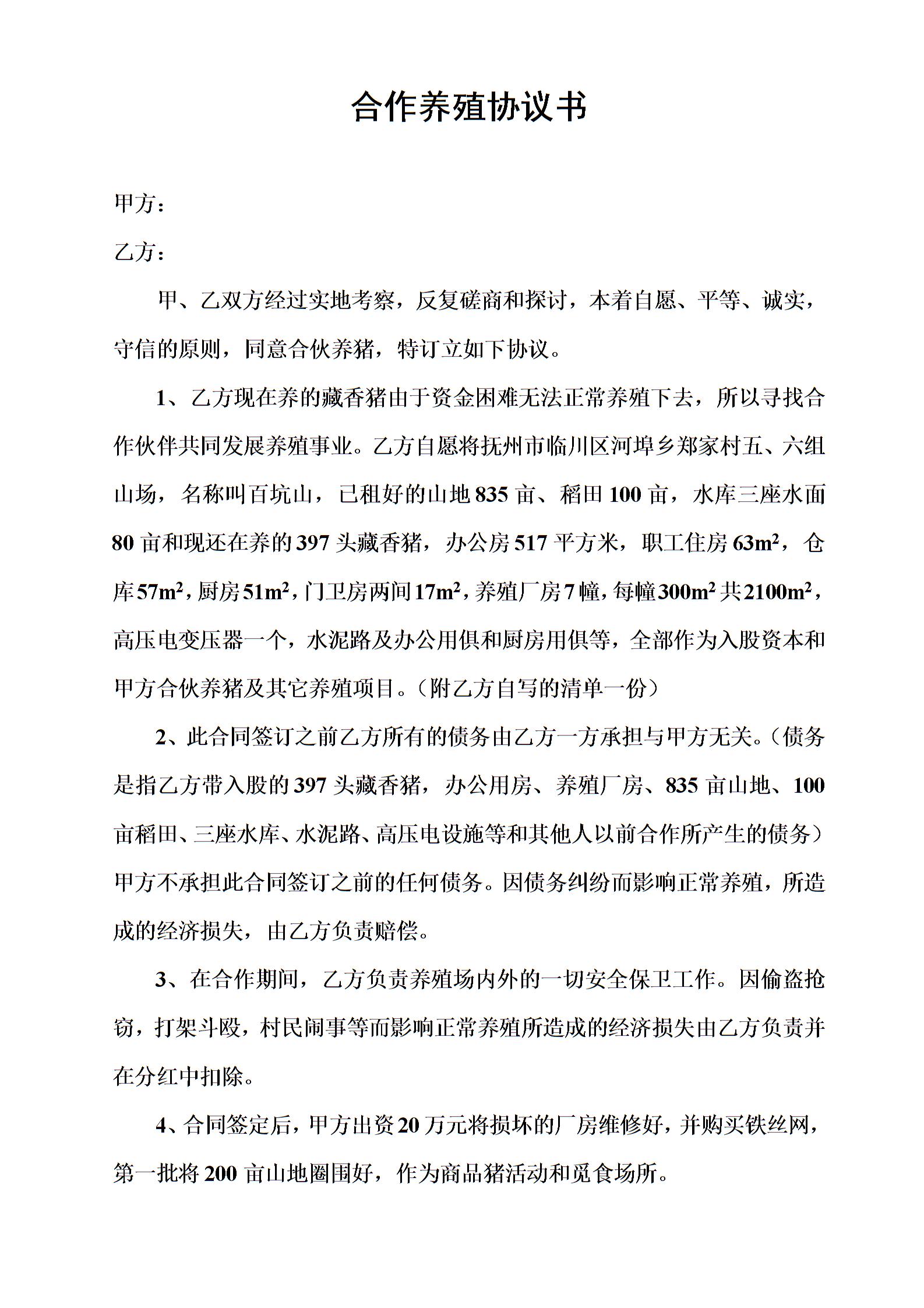 合作养殖协议书