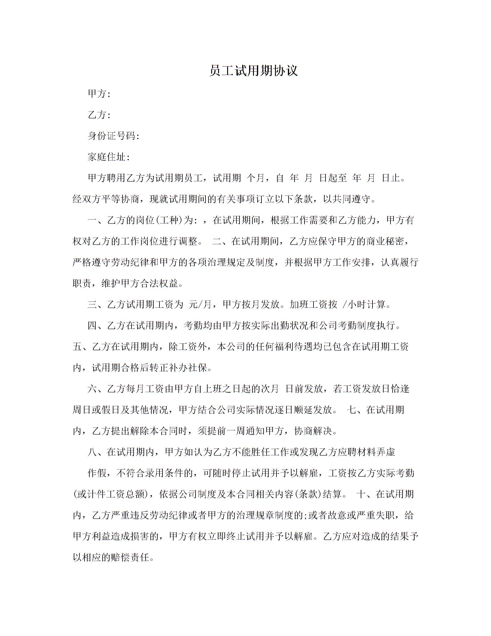 员工试用期协议