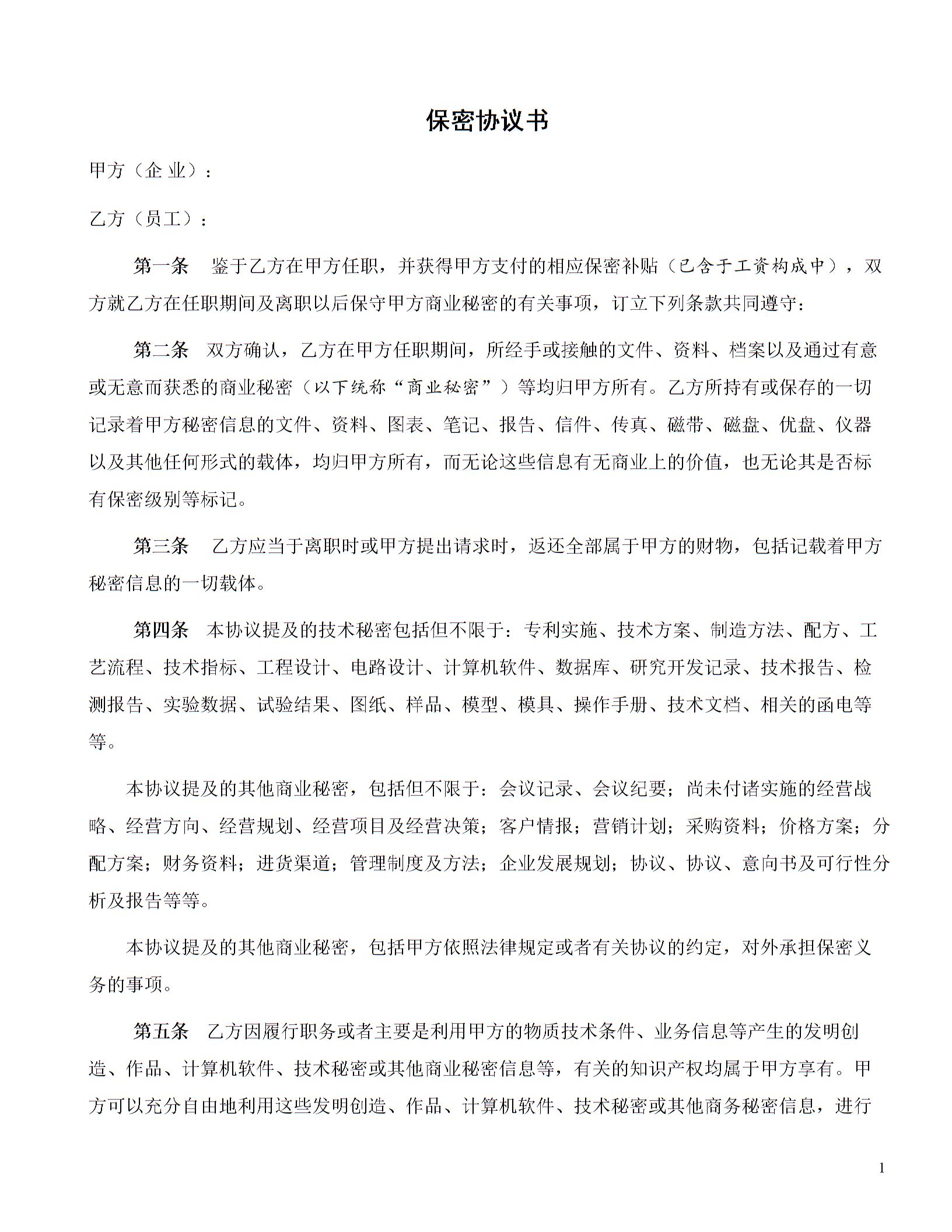 职工保密协议范本