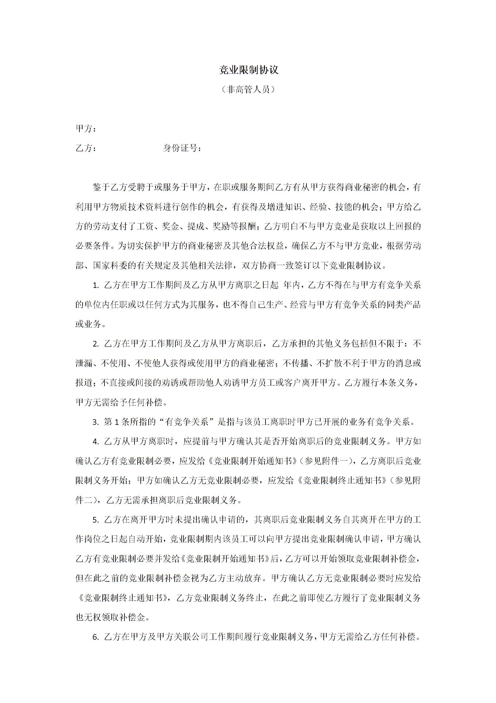 竞业限制协议(非高管)模板