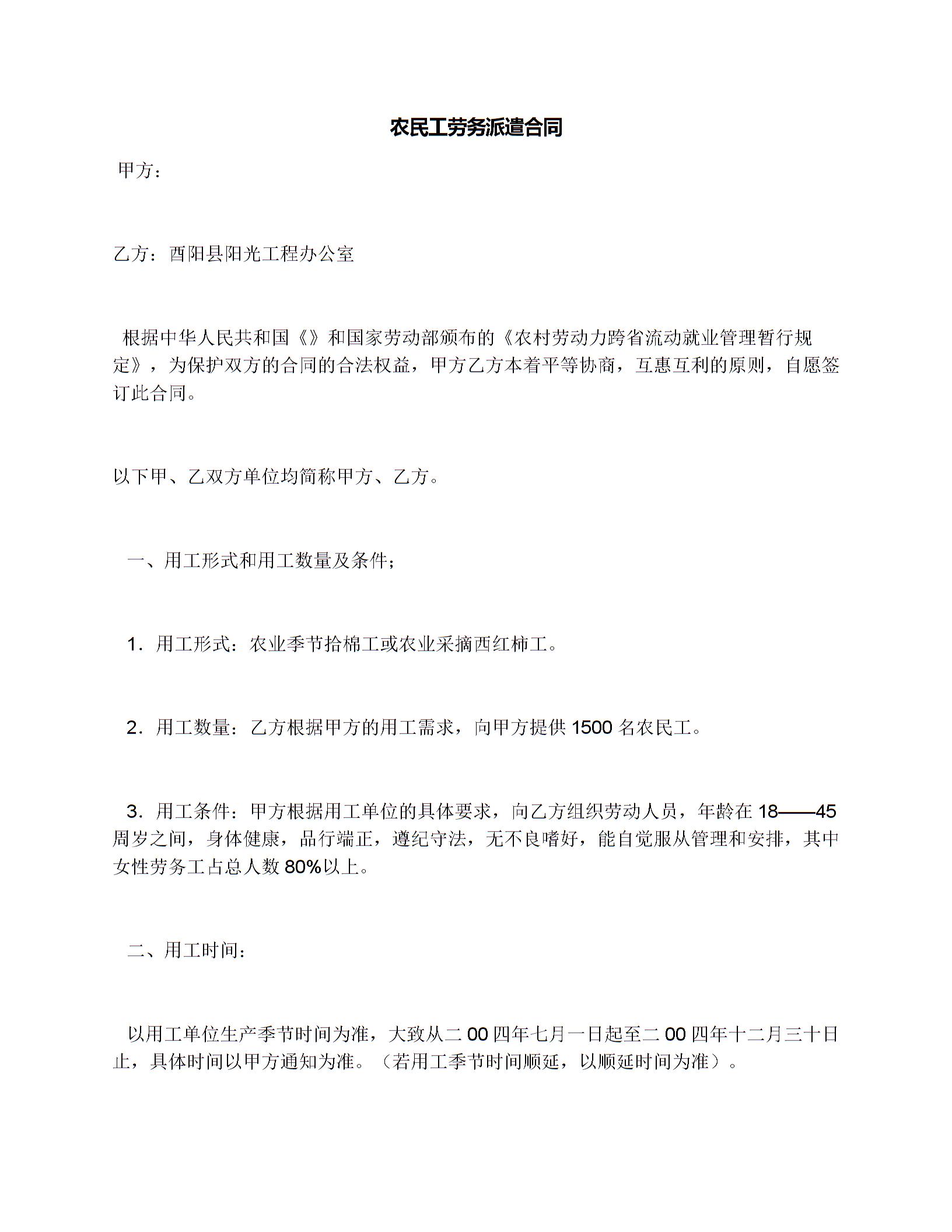 内蒙古自治区农牧民工劳动合同(示范文本)