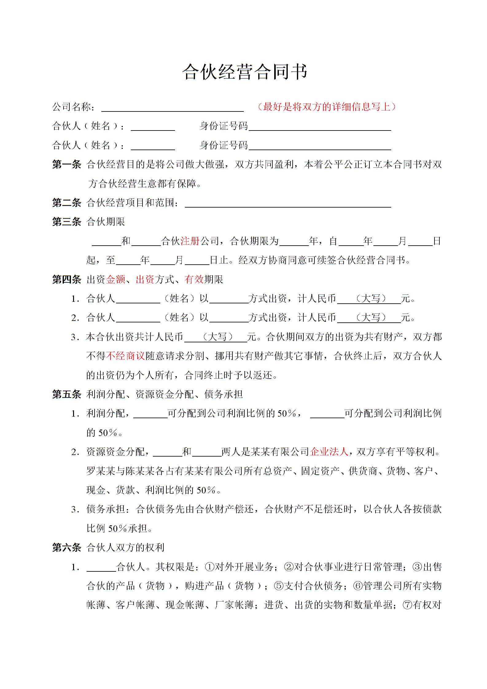 合伙经营合同书