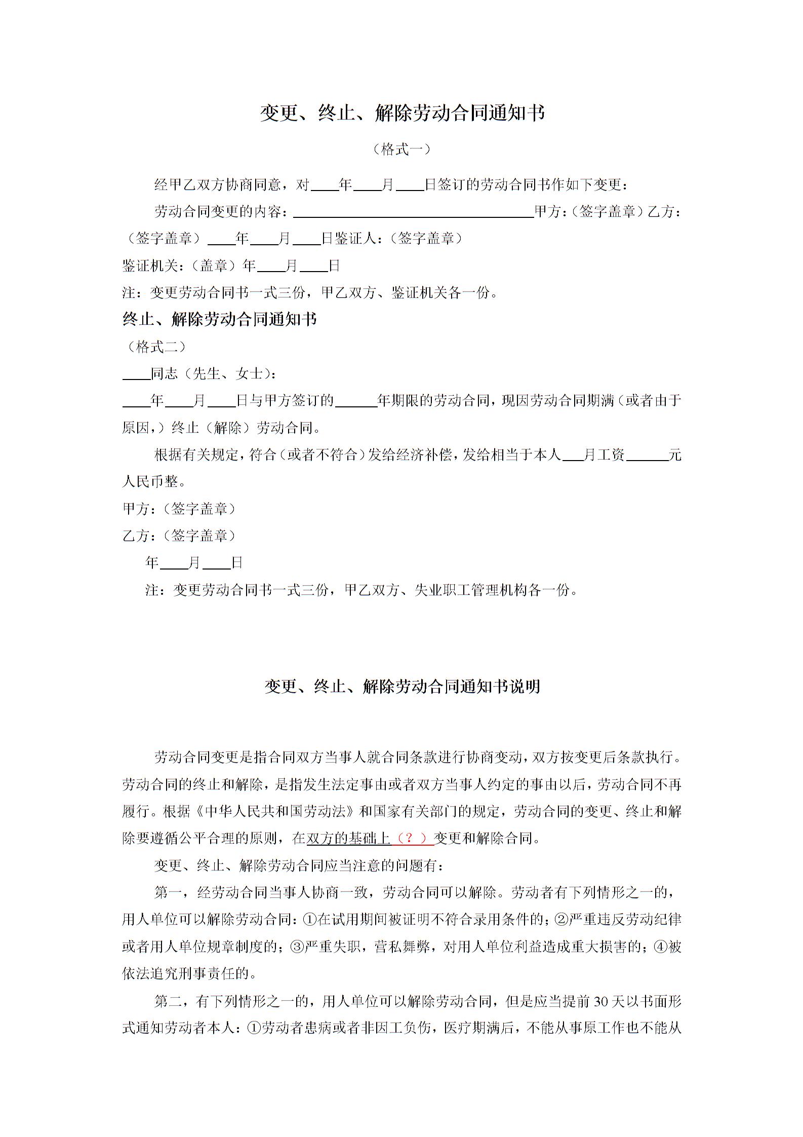 变更、终止、解除劳动合同通知书