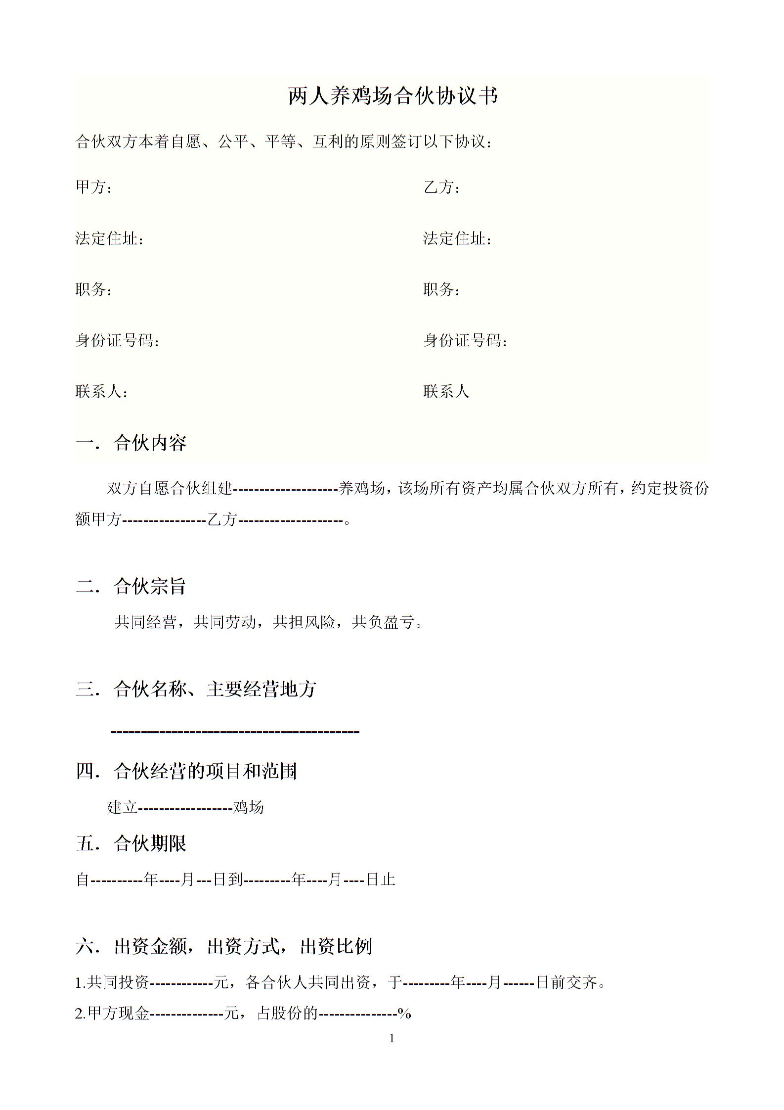 两人养鸡场合伙协议书