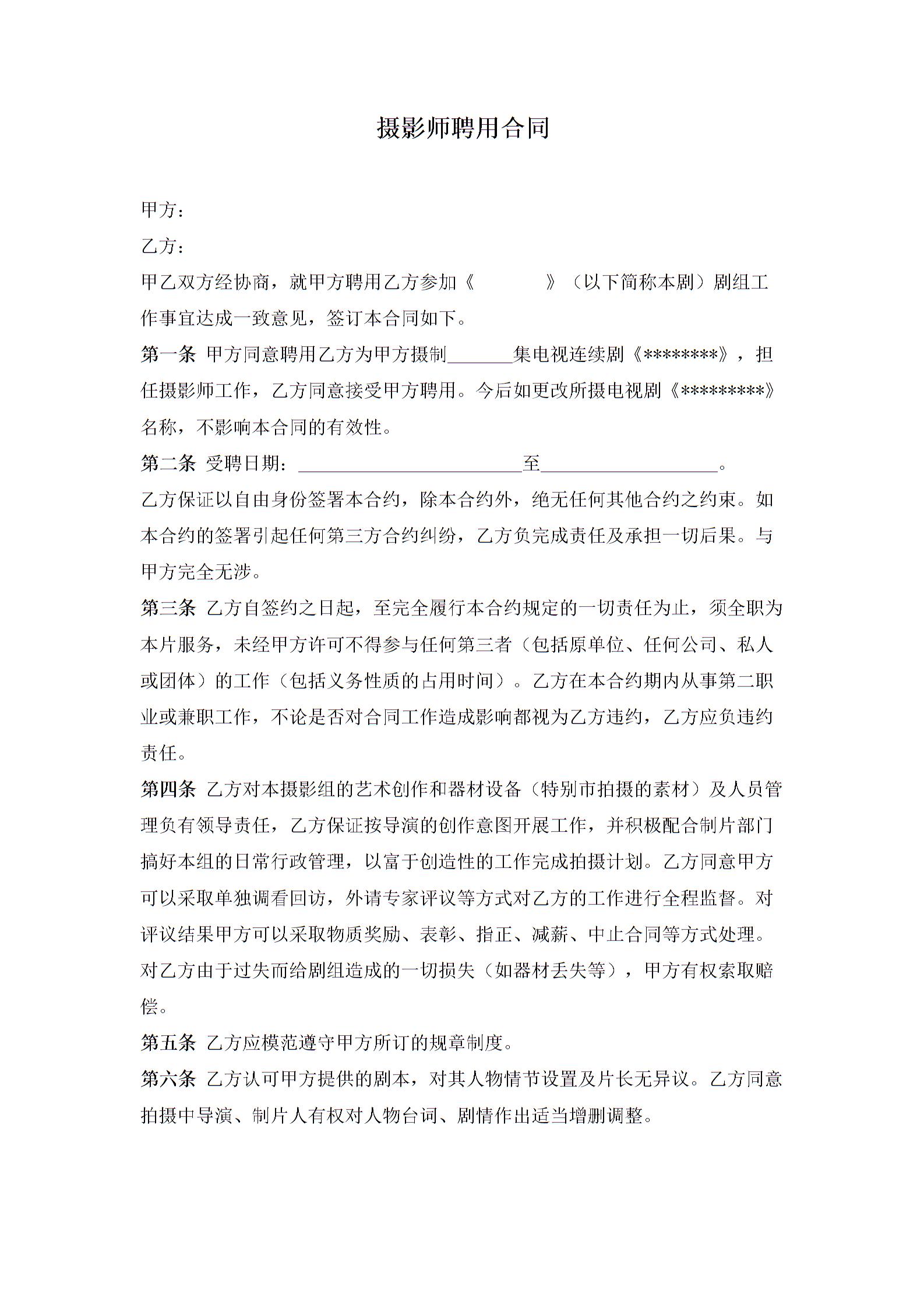 摄影师聘用合同