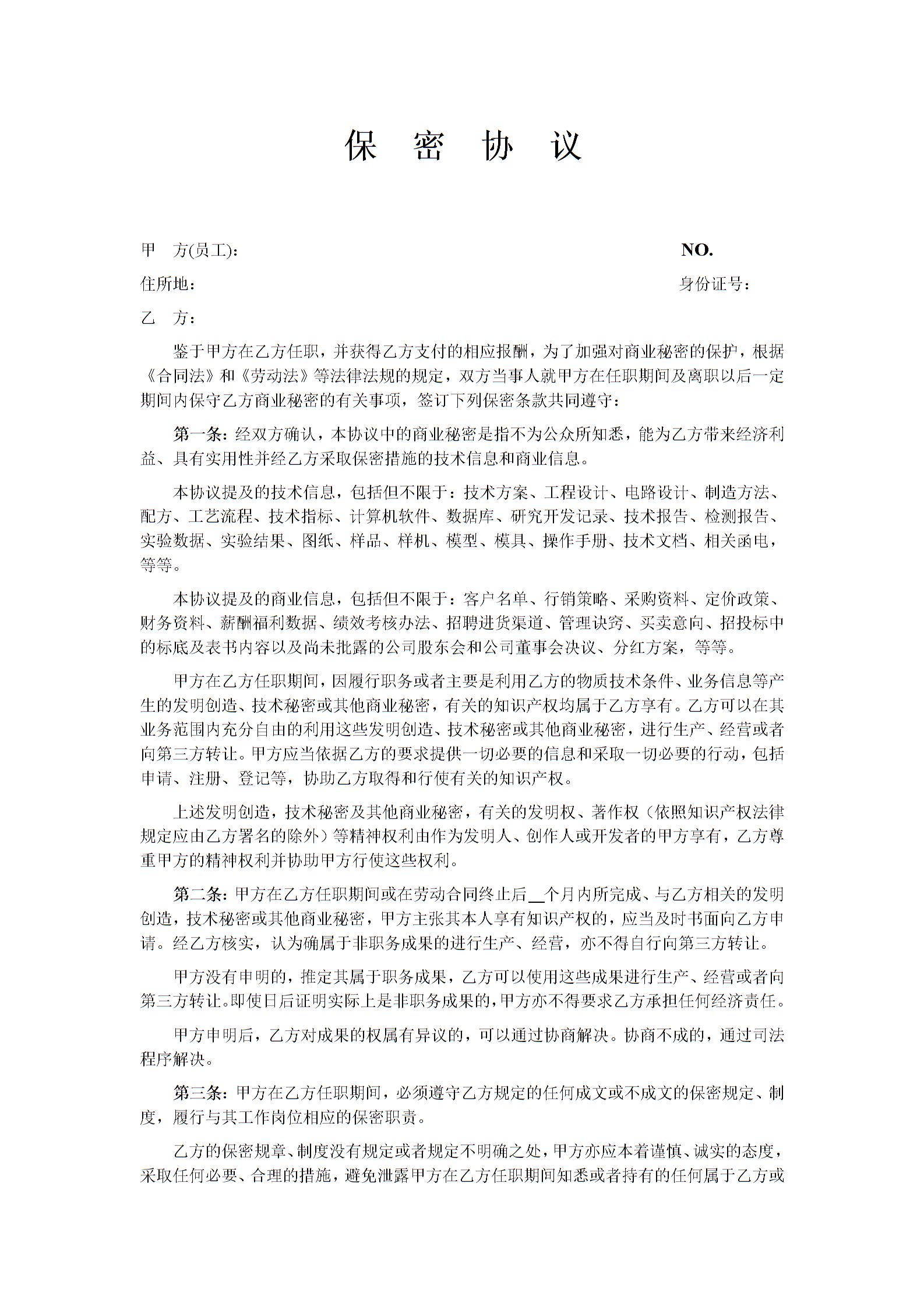 员工保密协议范本