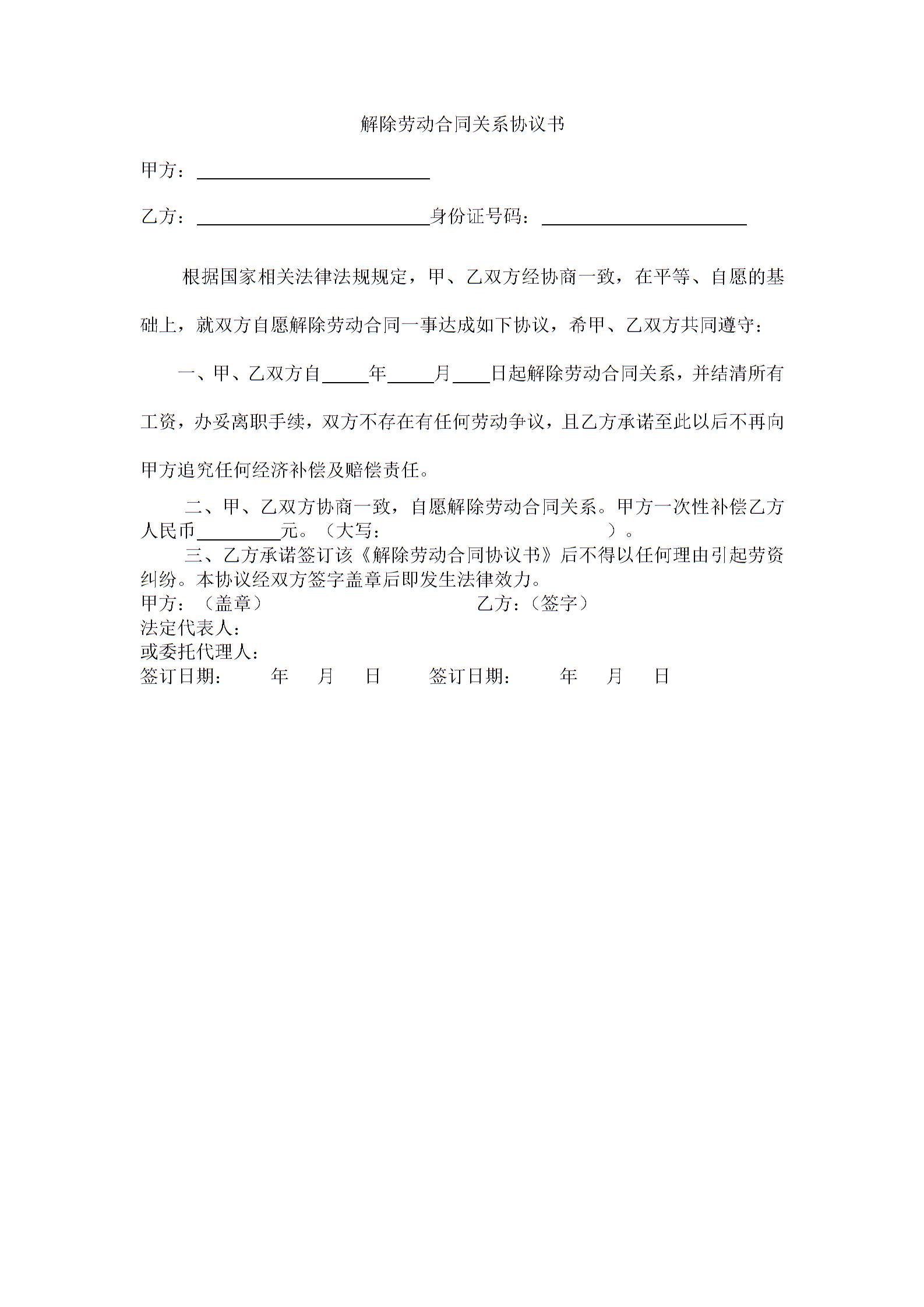 解除劳动关系协议书