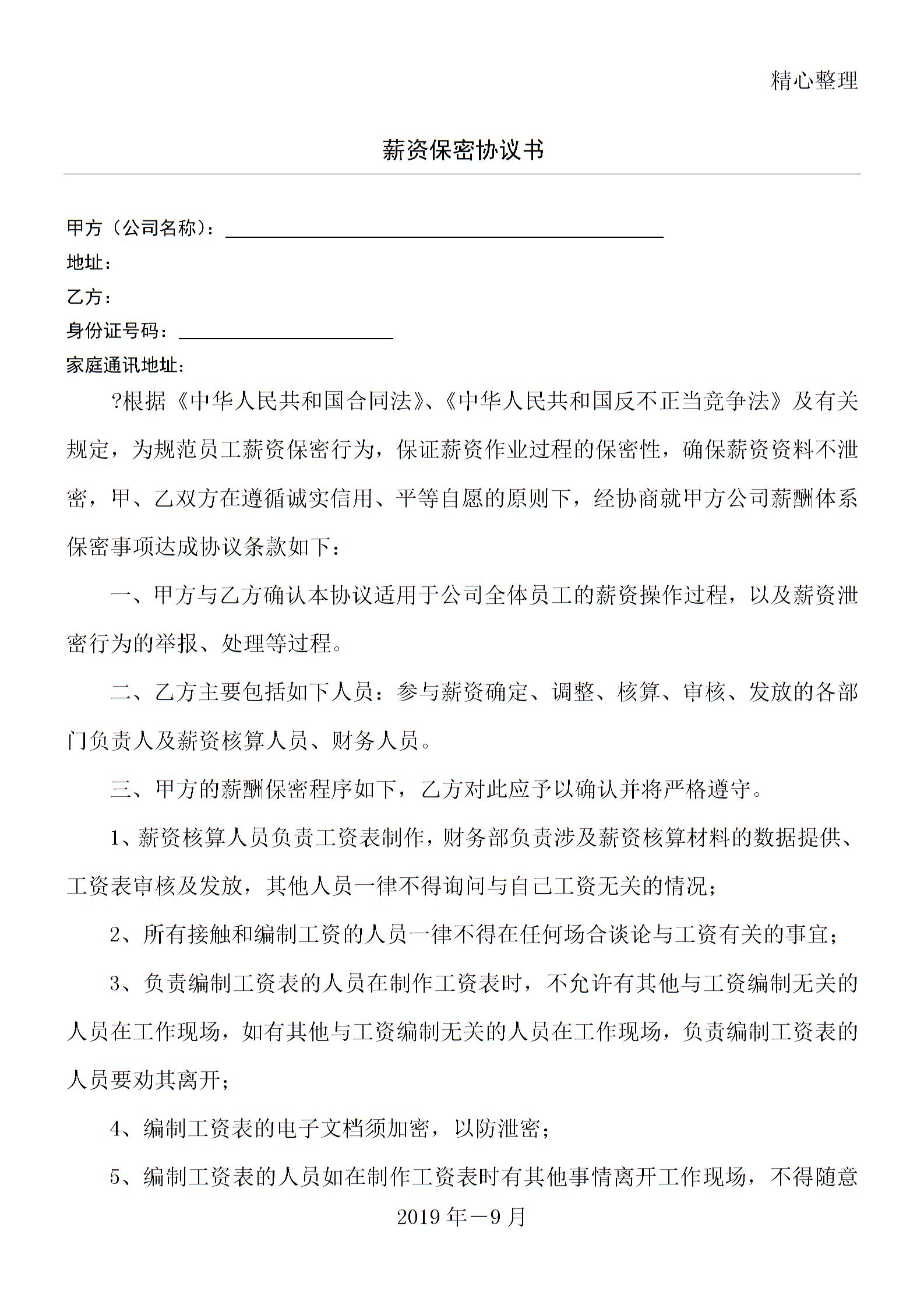 薪资保密协议合同书方案(适用于薪资作业规程指导相关人员)