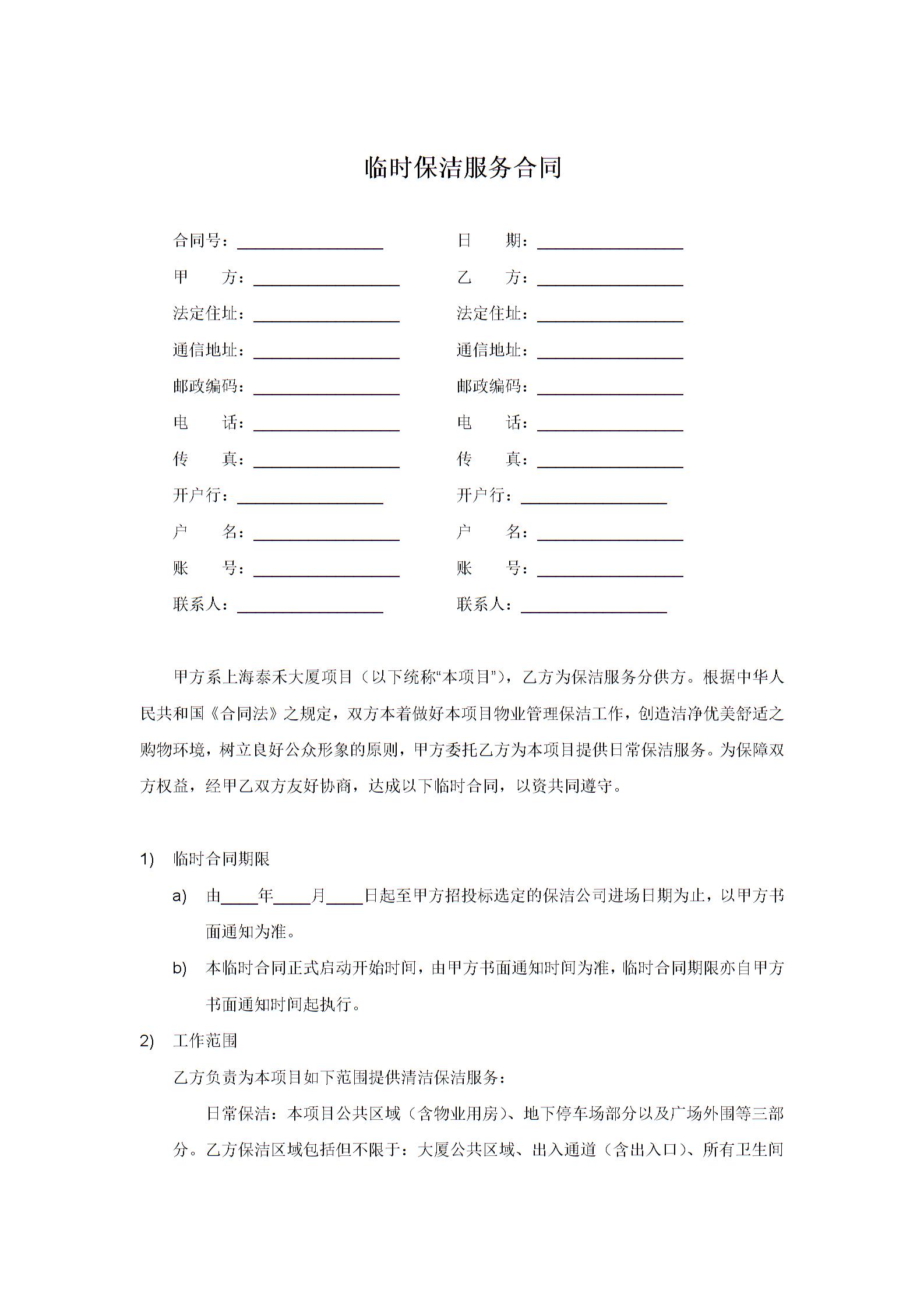 临时保洁合同