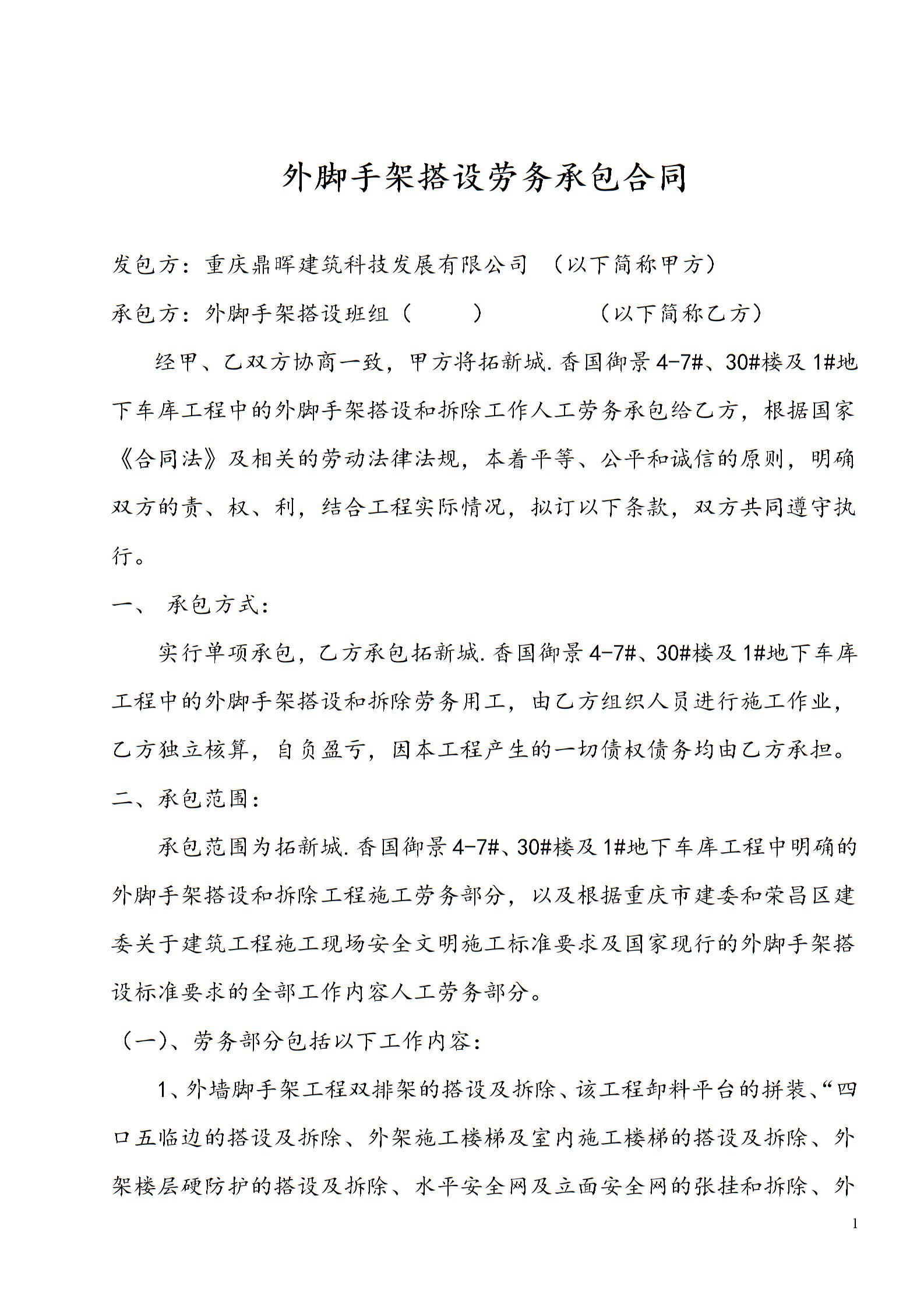 外脚手架搭设劳务分包合同