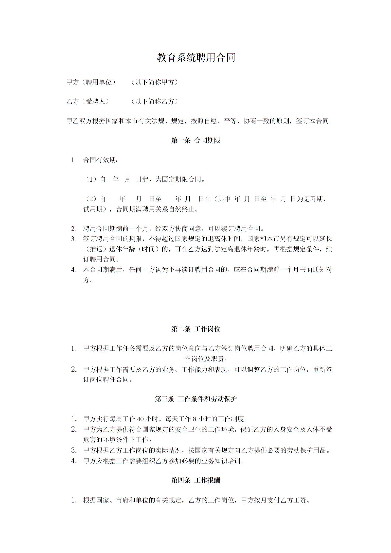 教育系统聘用合同