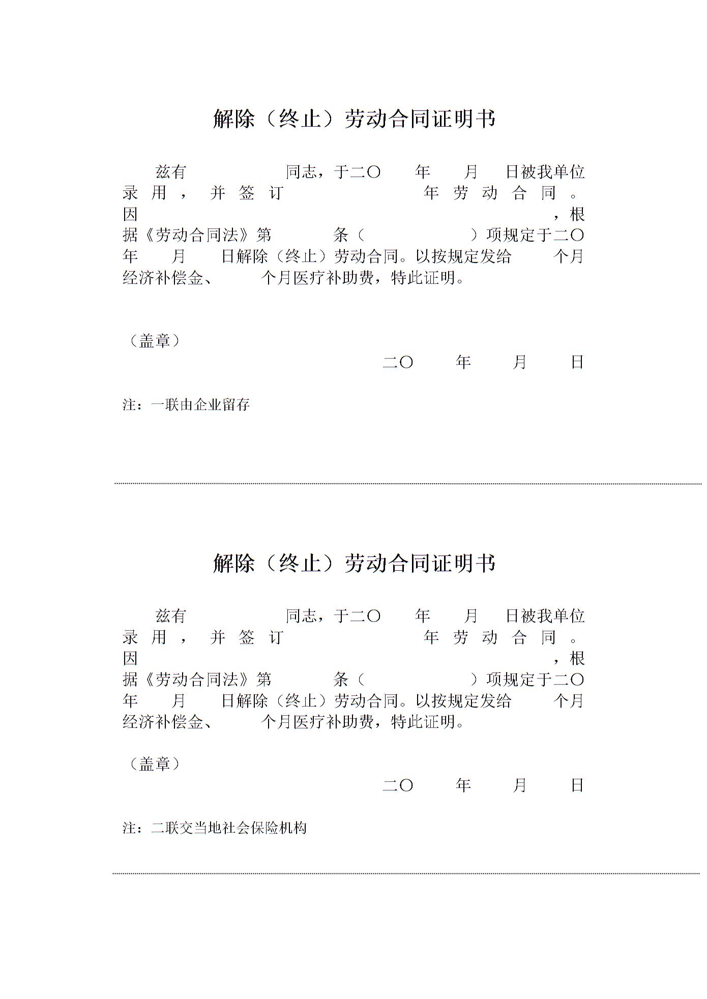 解除(终止)劳动合同证明书
