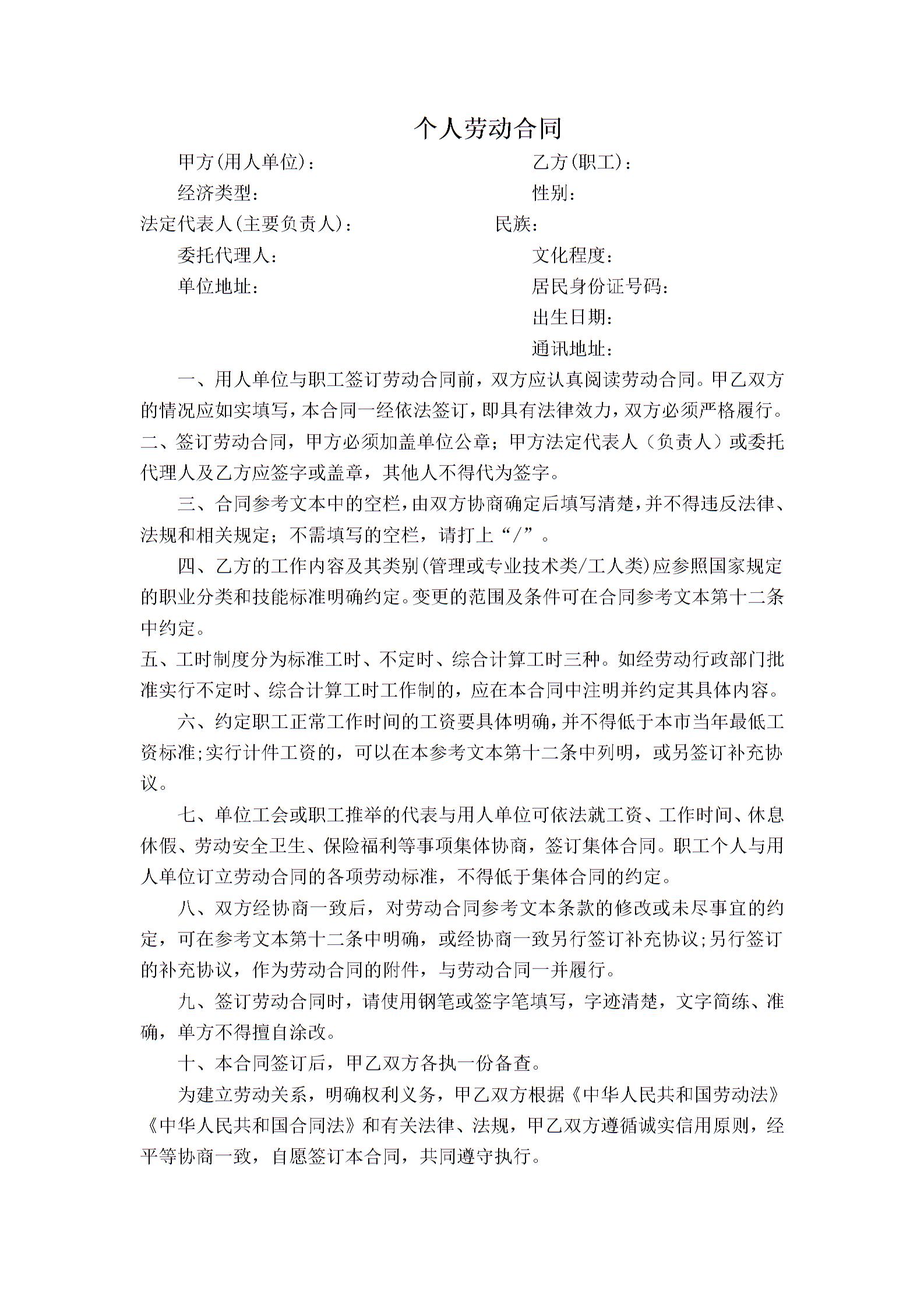 个人劳动合同