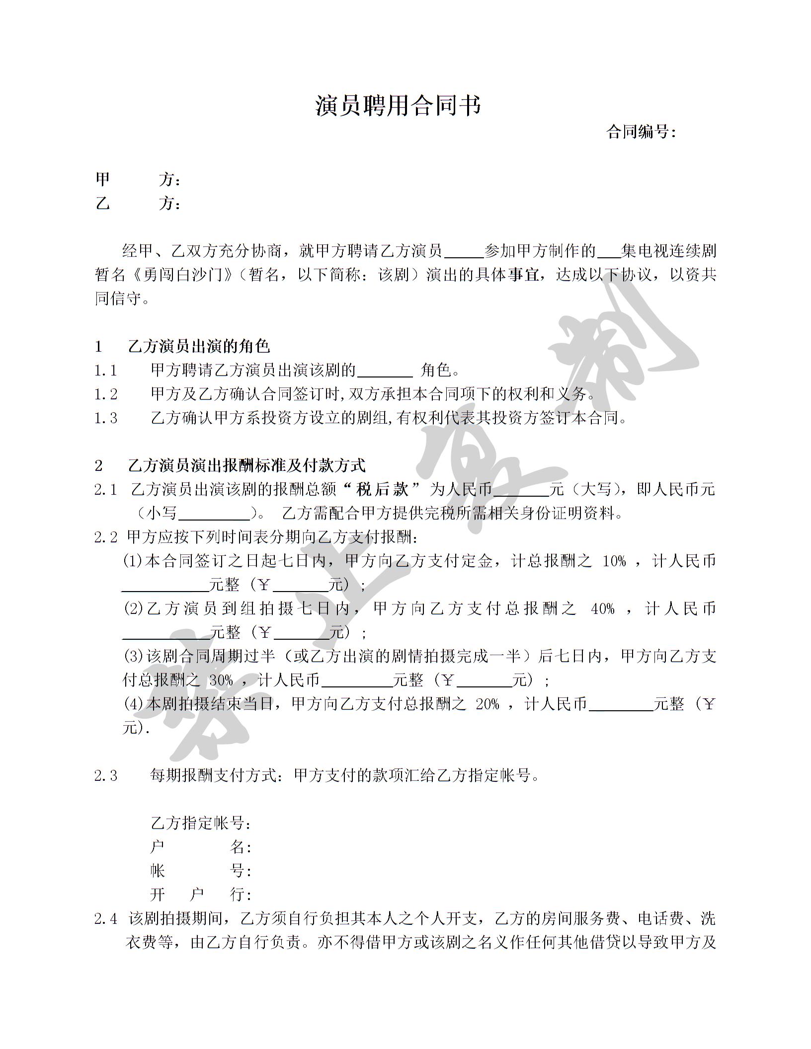 演员聘用合同协议书