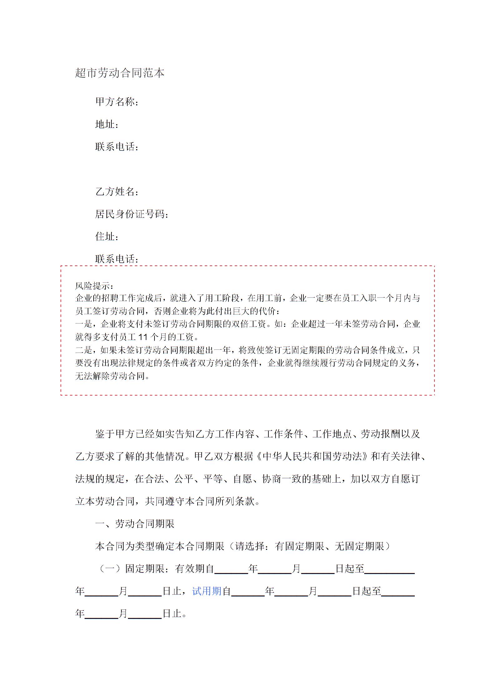 超市劳动合同