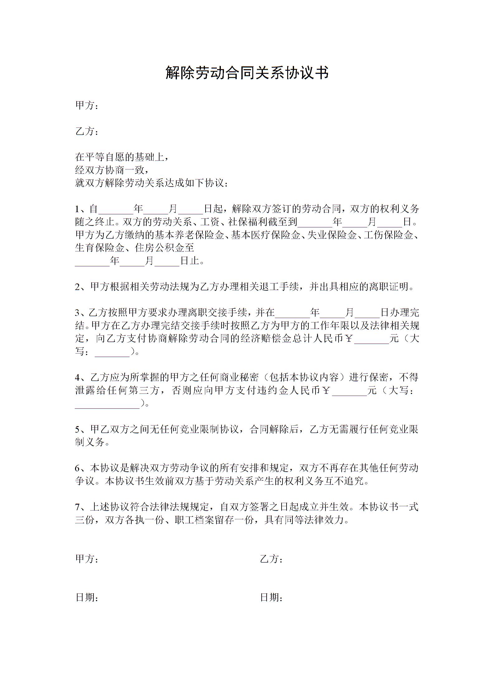 解除劳动关系协议书