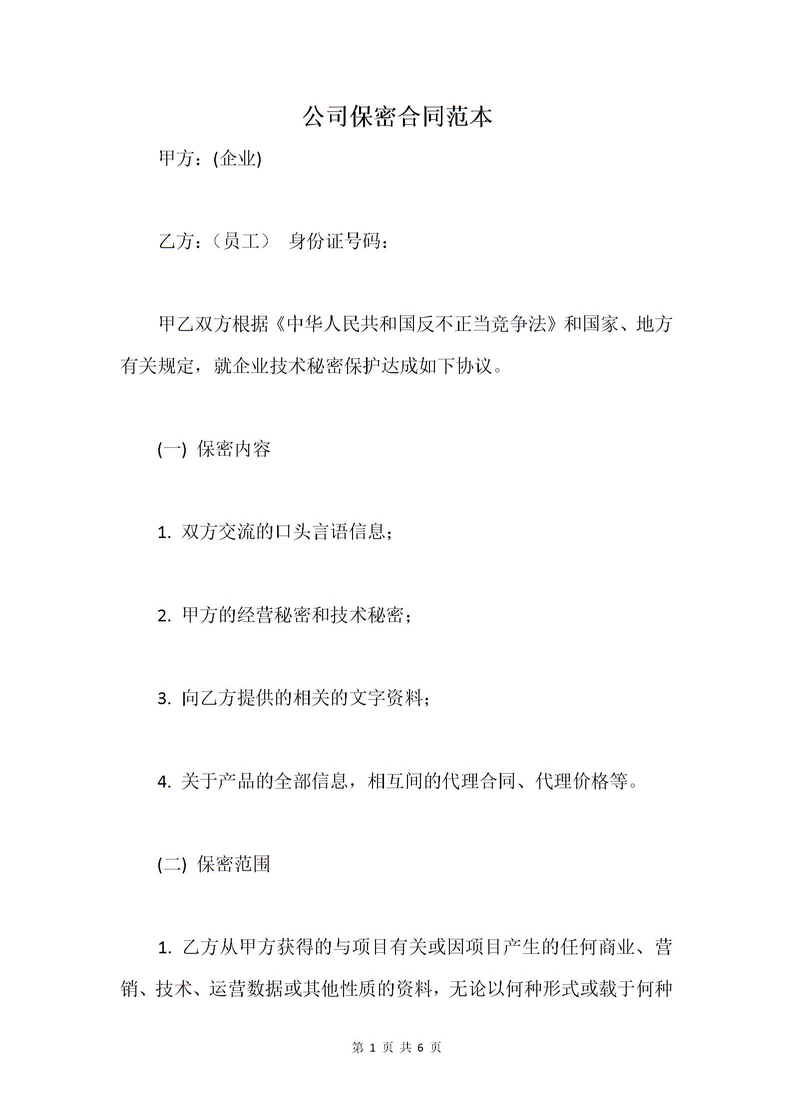 公司保密合同范本