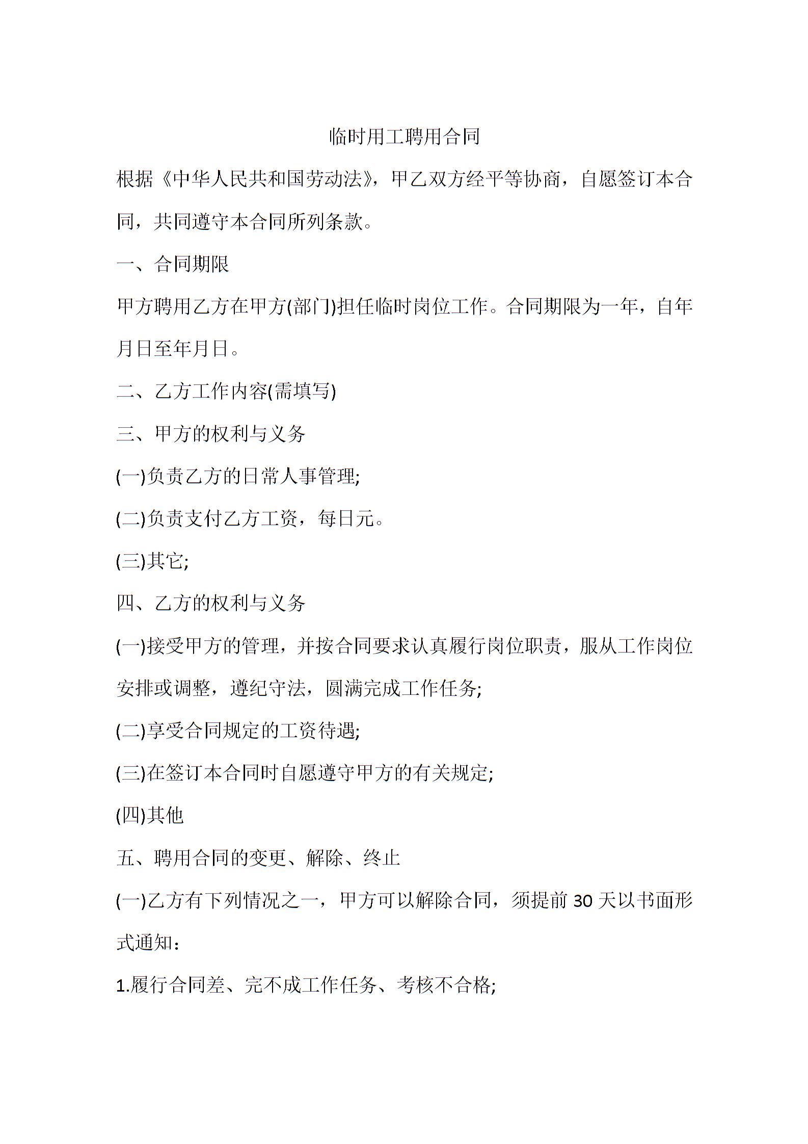 临时用工合同