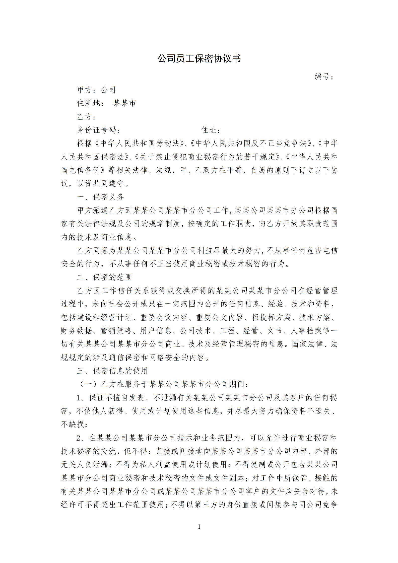 职工保密协议范本
