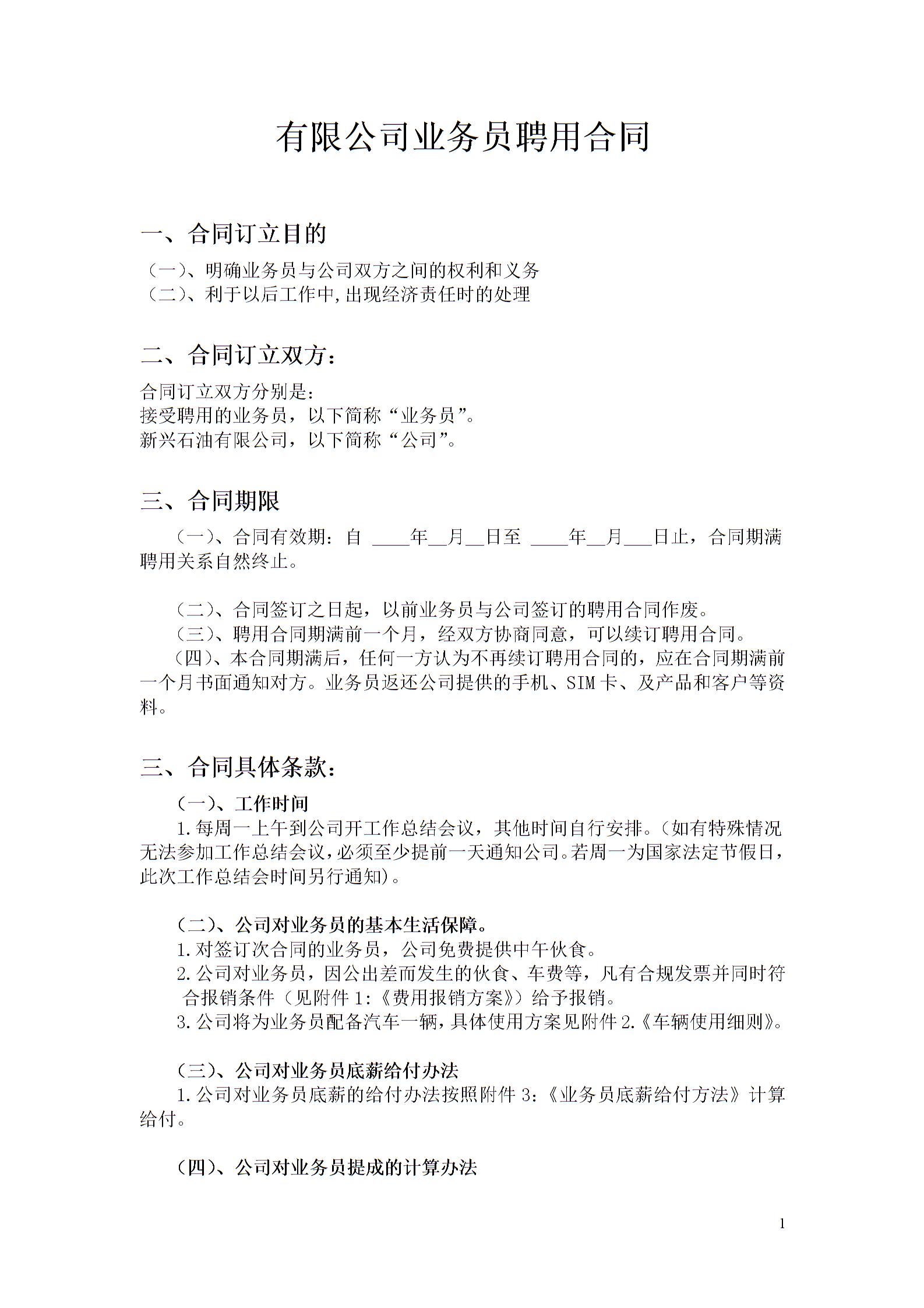 公司业务员聘用合同