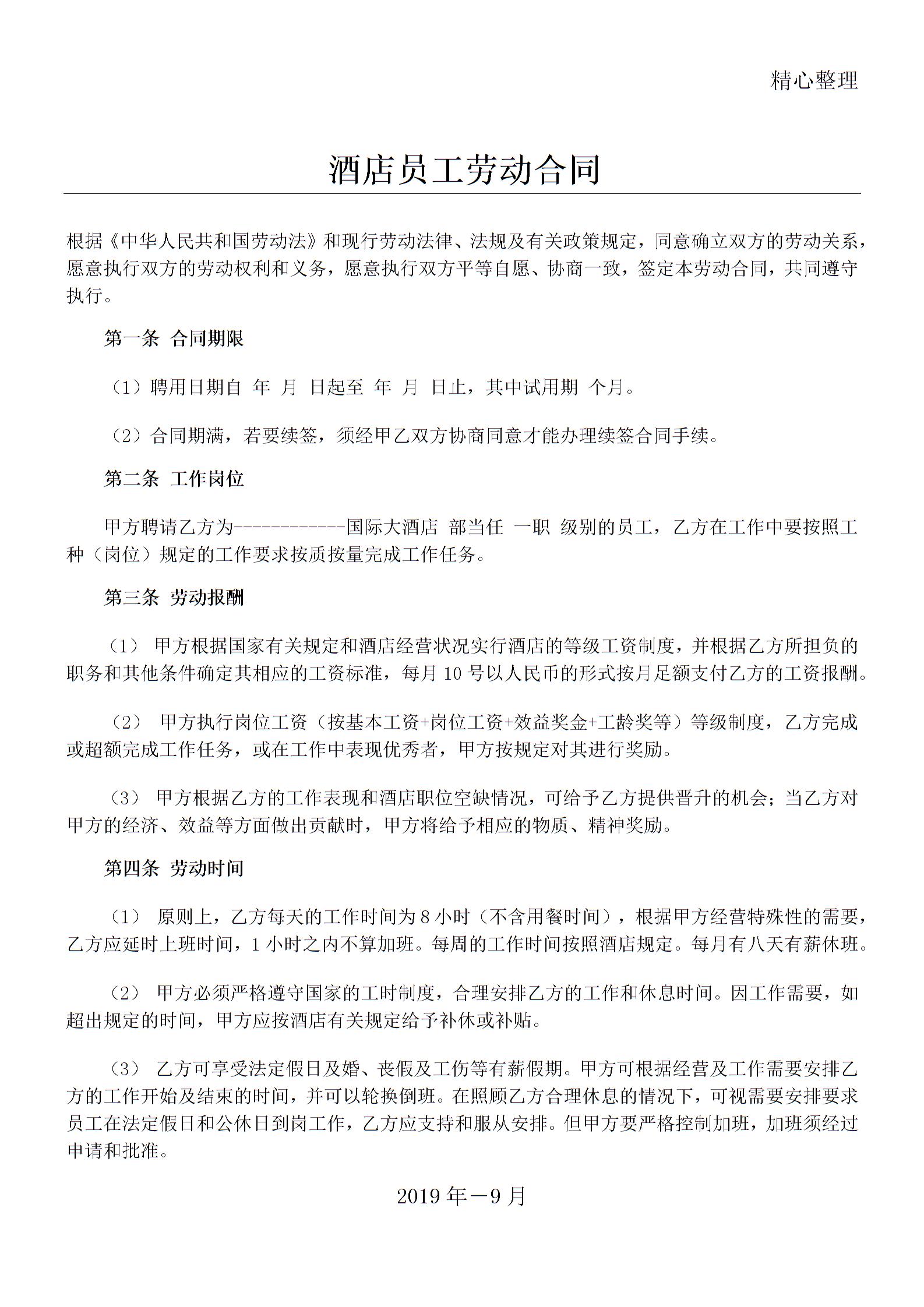 79酒店员工职工工人劳动合同协议合同书